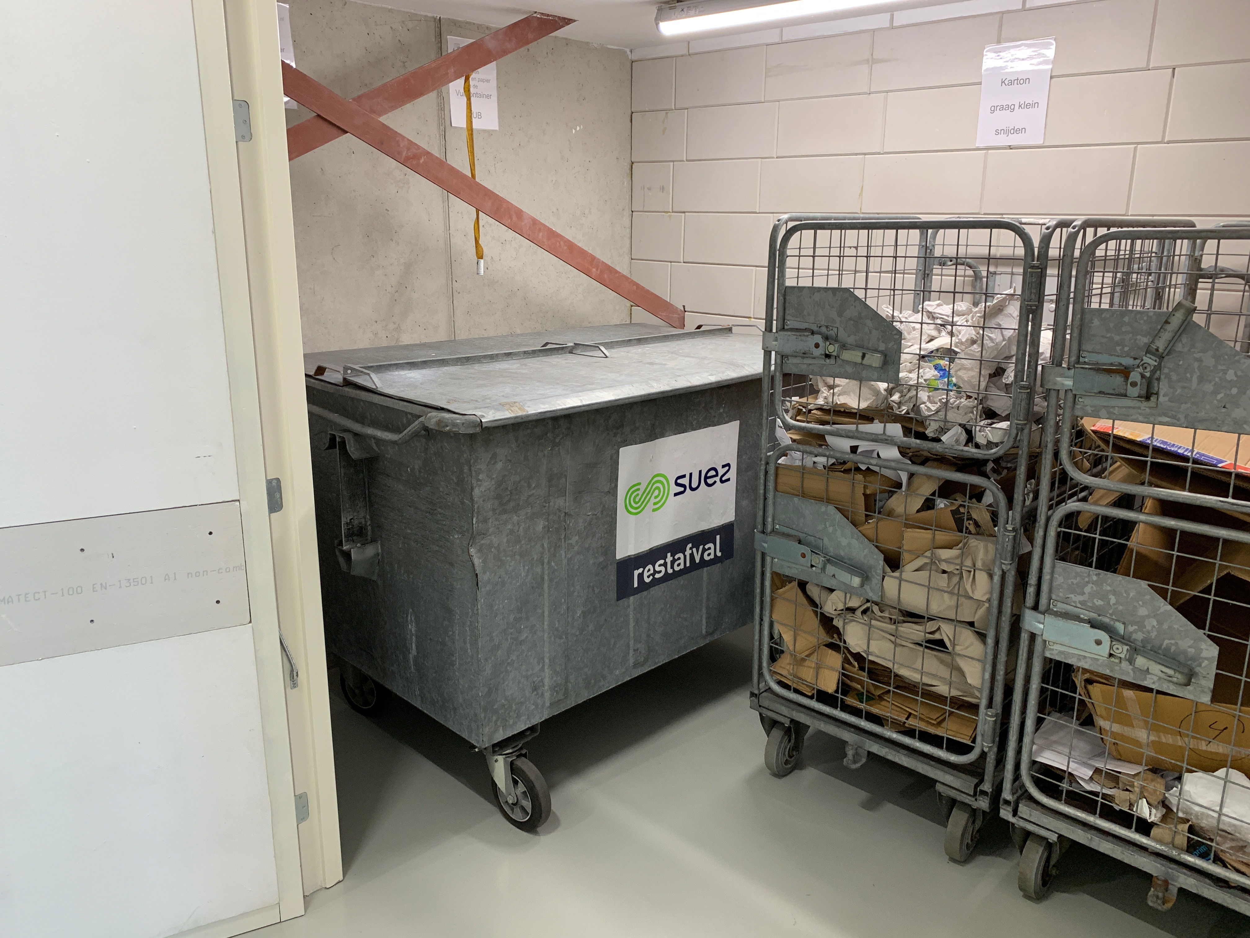 De ruimte waar alle afval wordt verzameld is beneden in de hal en kun je openen met je persoonlijke tag.