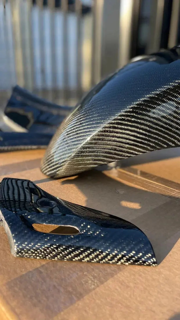 Hand gemaakt door vakmensen die weten wat ze doen. De kwaliteit is dan ook fenomenaal. De carbonstructuur kenmerkt zich aan zuivere belegging en extreme diepte. De pasvormen zijn als orgineel waardoor de montage gemakkelijk uitgevoerd kan worden,
