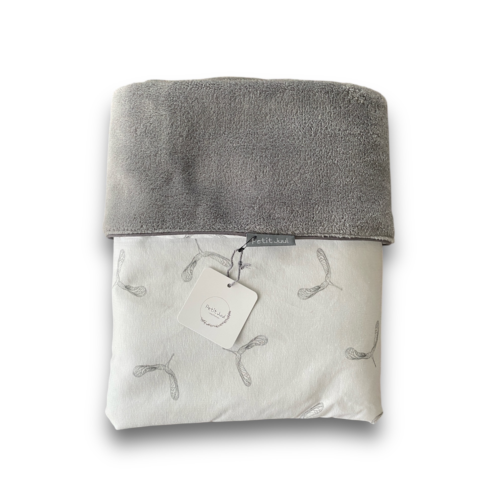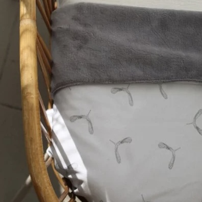 Dit superzachte dubbelzijdige dekentje in de kleur Off-white met print Propellers en de andere kant Teddy Grijs. Dit dekentje kun je aan beide zijde gebruiken.