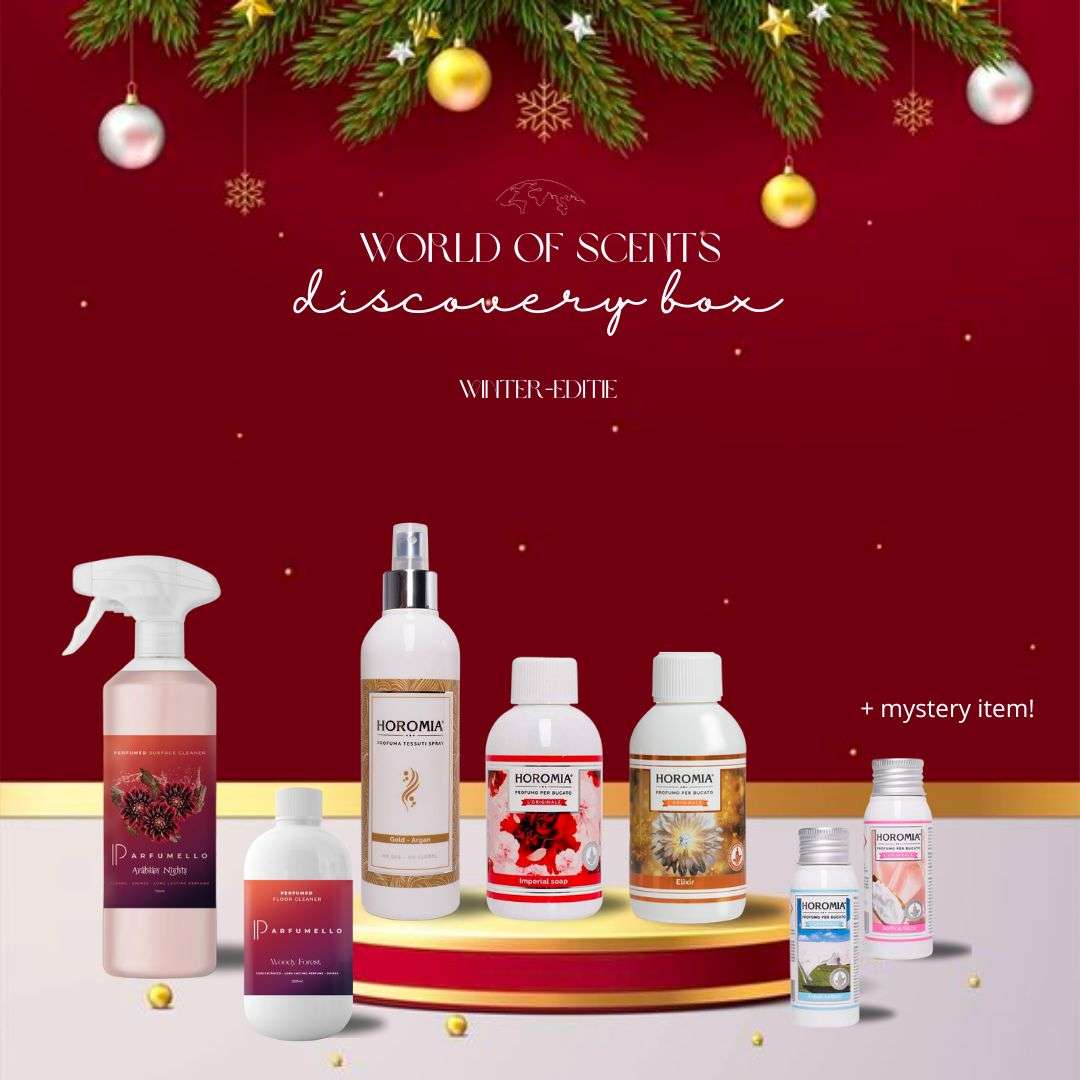 De winter-editie world of scents discovery box bestaat uit 8 full-size producten (incl. 1 mystery item) van wasparfum, huisgeuren en schoonmaakmiddelen met een totale waarde van €119,95, en kost nu maar €59,95!!!