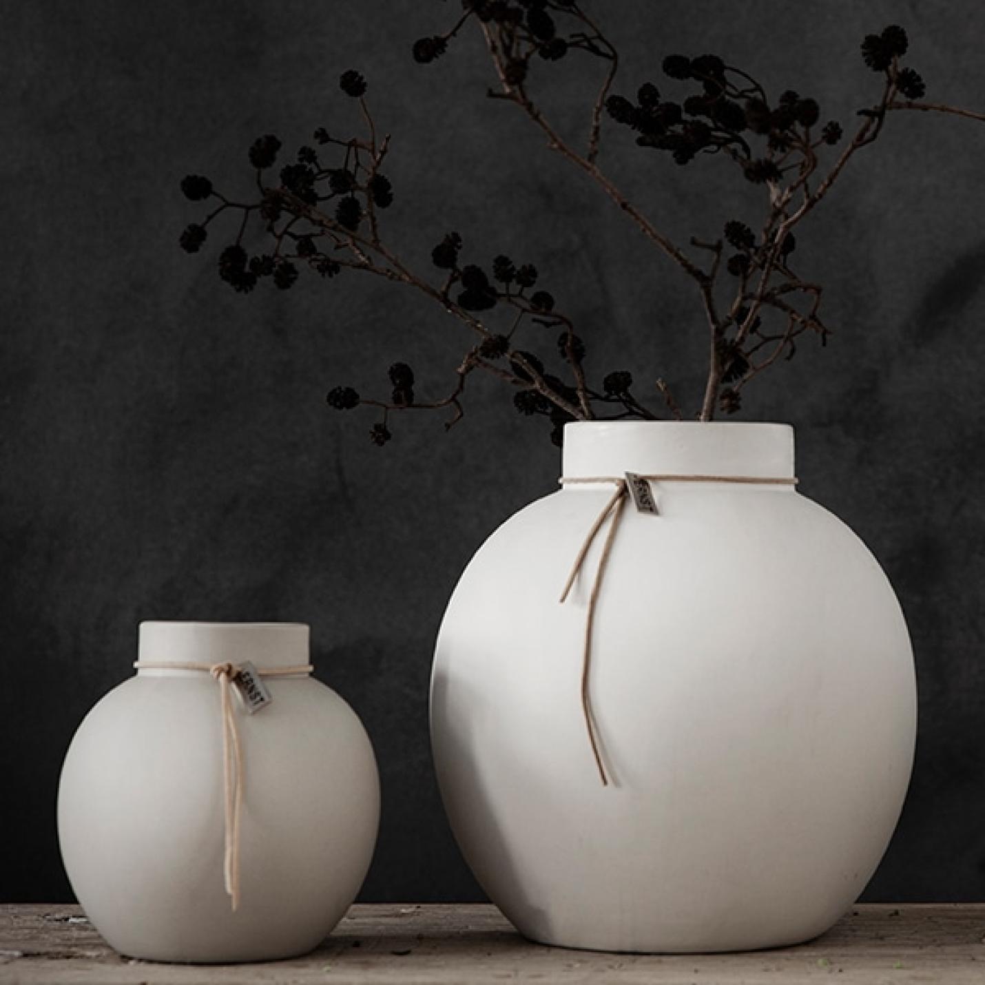 Deze vaas is gemaakt van steengoed en ook verkrijgbaar in de kleur natuurlijk wit en in de maat M en de maat L. Kortom, ook heel erg mooi als set bij elkaar.