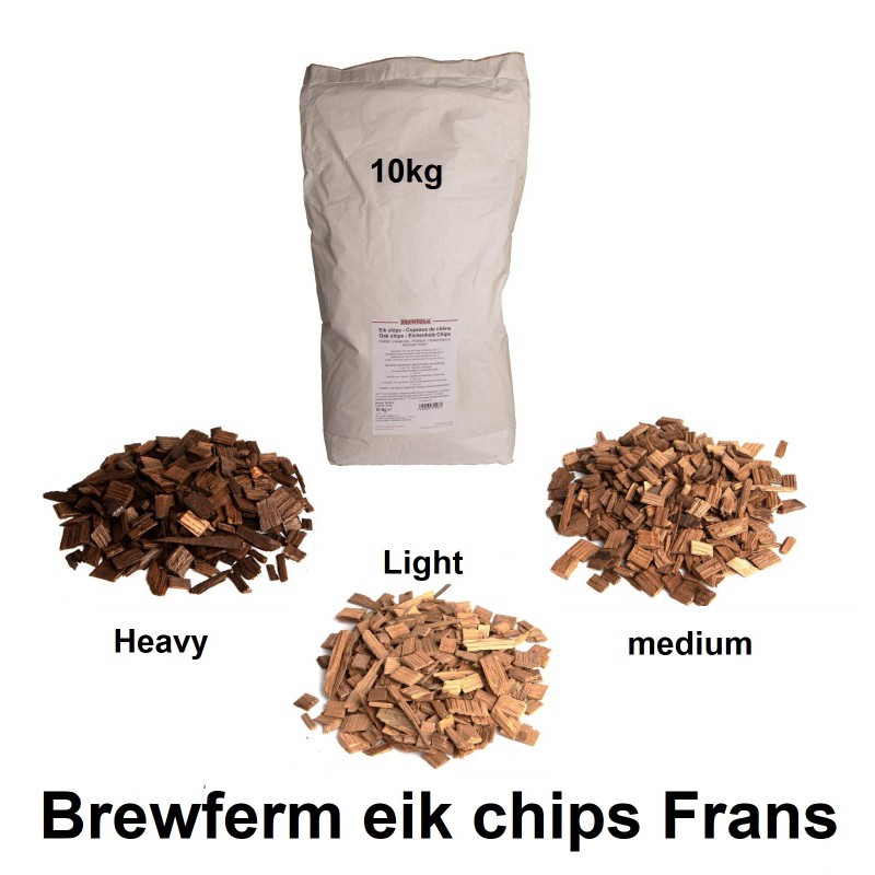 Hou jij van de smaak van eikenhout in je bier, wijn of likeur, maar schrikken de investeringen, het hoge onderhoud en het gedoe met eikenhouten vaten je af? Dan zijn eik chips dé perfecte oplossing! Ze zijn niet alleen gemaakt van echte eikenhouten duigen, dankzij het grotere contactoppervlak geven ze ook sneller hun smaak af dan een vat. Bovendien zijn ze gemakkelijk in gebruik, gewoon in een hopzakje toevoegen aan je drank en verwijderen wanneer je precies het smaakprofiel hebt bereikt dat je wil. Niets dan voordelen en dat tegen een fractie van de kosten van een echt eikenhouten vat. Het toevoegen van eik aan je wijn verandert de smaak, het aroma, de conservering en de kleurstabiliteit. dosering: 5-30 g/10 l contacttijd: enkele dagen tot 3 maanden gebruik: kan worden toegevoegd aan most, wijn, bier, sterke drank, .... Smaakprofiel: kruidig, vanille, gematigd eiken.