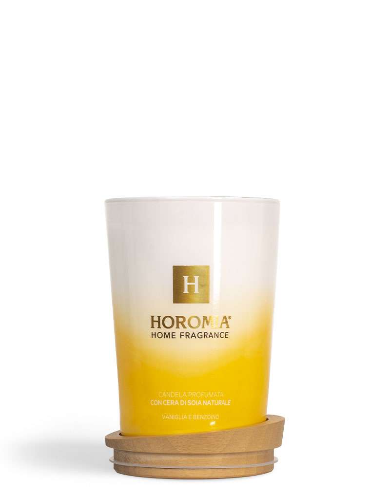 Laat je zintuigen op een betoverende reis gaan met de Horomia "Vaniglia e Benzoino" geurkaars.