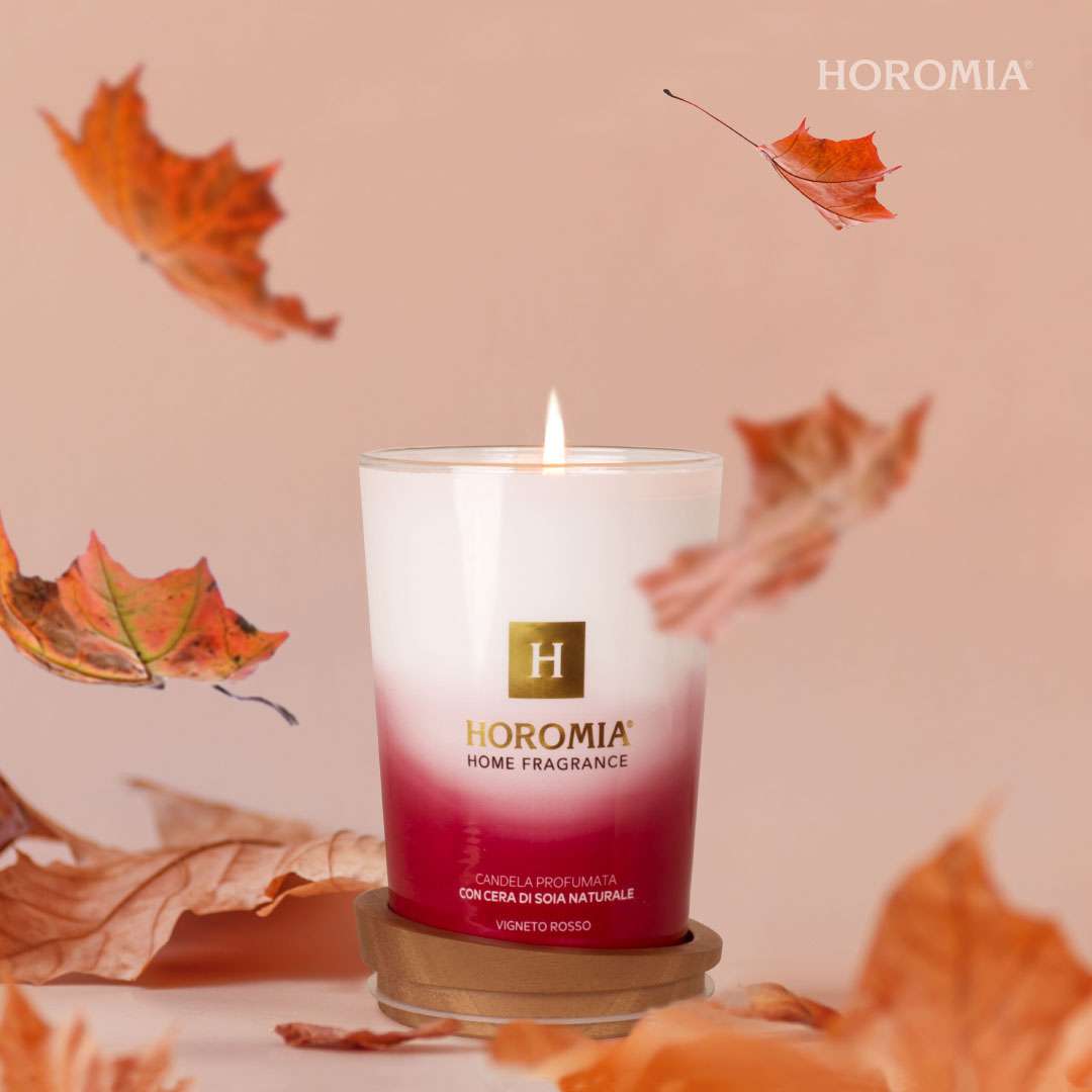 Stap binnen in een betoverende wijngaard in volle oogsttijd met de Horomia "Vigneto Rosso" geurkaars. Deze kaars neemt je mee op een reis door weelderige wijngaarden en omhult je met de de geur van rijpe, sappige druiven en de warmte van de zon.