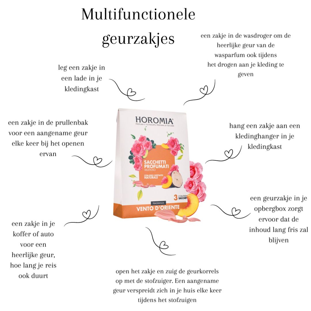 De overheerlijke Horomia-geuren zijn nu verkrijgbaar in multifunctionele geurzakjes.