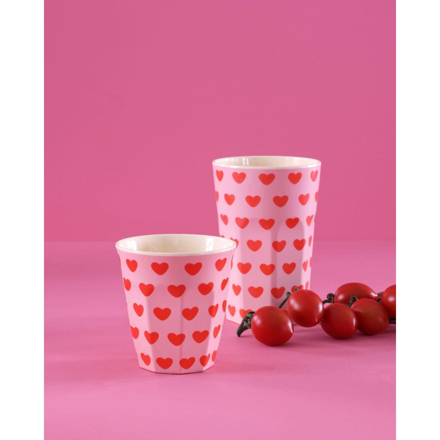 Grote Melamine Beker - Zacht Roze met Hartjesprint - Rice