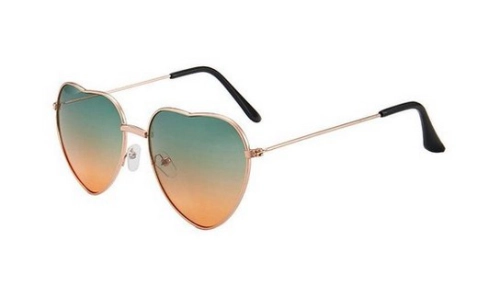 Deze hartvormige zonnebril heeft groen/gele glazen en een goudkleurig frame. Al jouw outfits worden opgefleurd met deze bril.