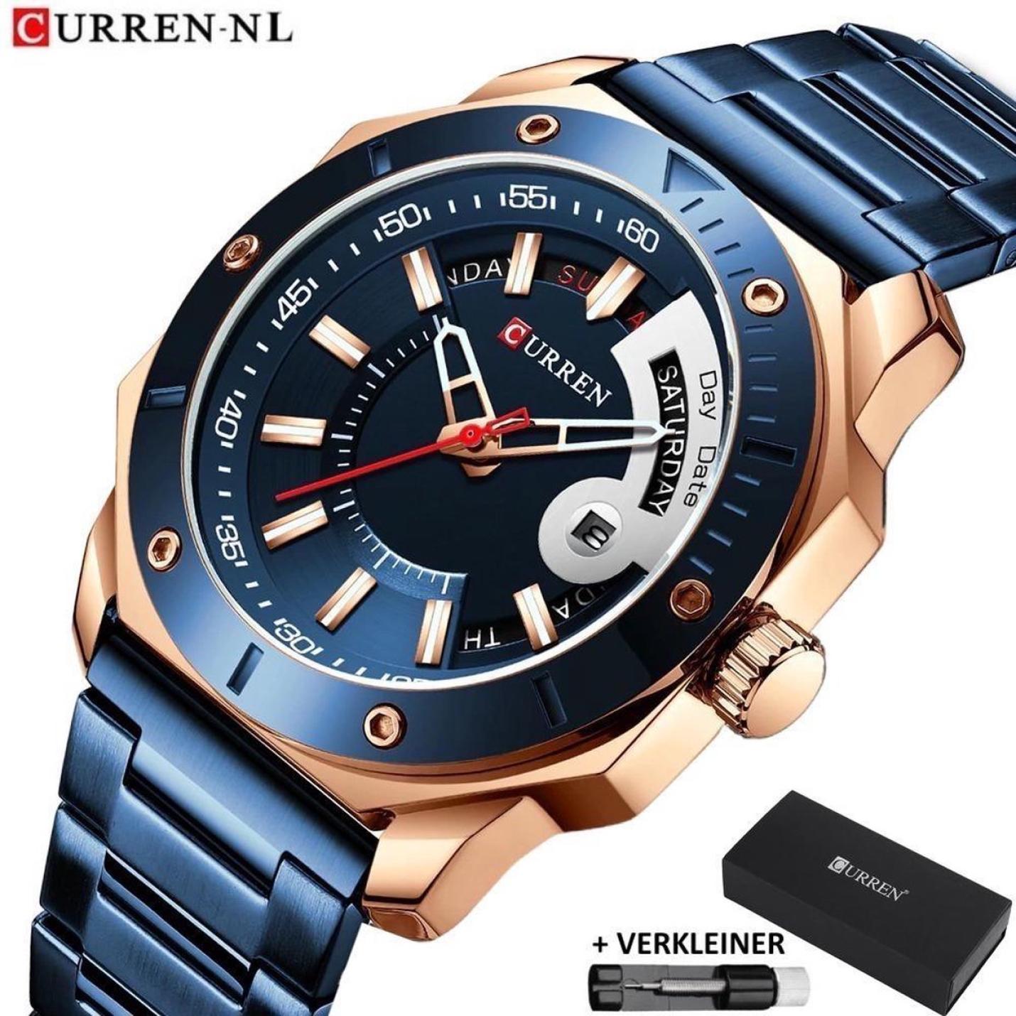 Horloges voor Mannen Heren Horloge Curren Herenhorloge Watch - Jongens Horloges - Incl. Horlogebox Geschenkdoos & Versteller - Blauw Rosé - Litts®