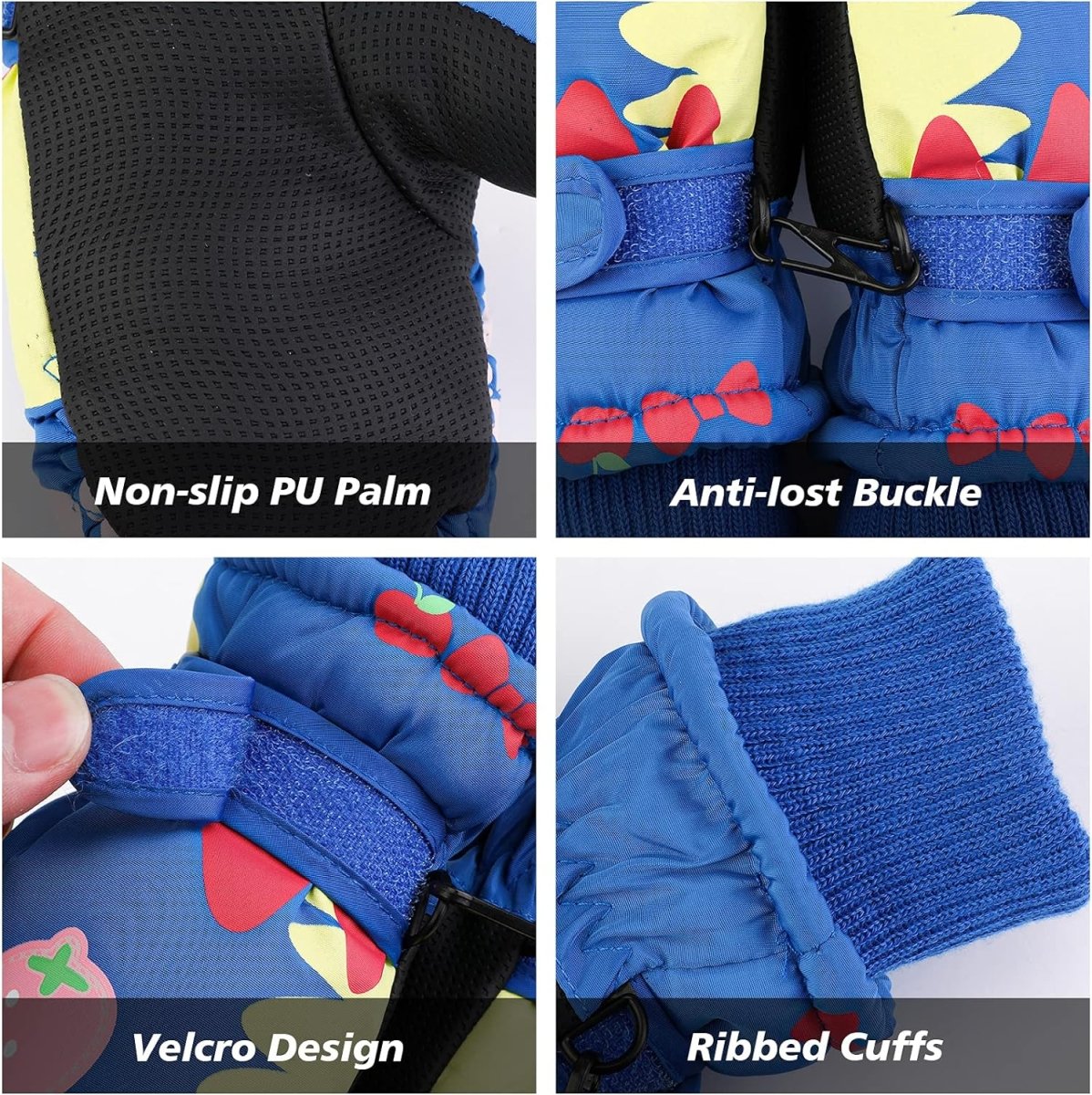 De kinderhandschoenen hebben een verstelbare klittenbandsluiting en geribbelde manchetten. Dit zorgt ervoor dat de handschoenen perfect passen en dat ze niet afglijden. De handschoenen hebben ook een anti-verloren gesp om te voorkomen dat ze verloren gaan.
