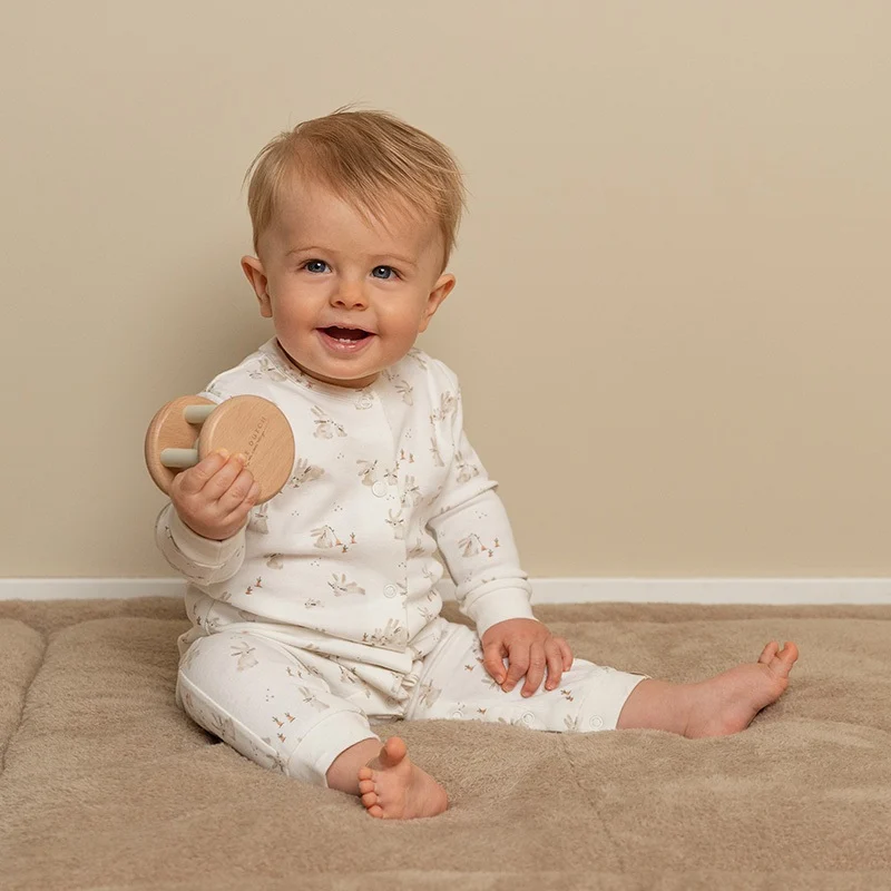 De houten rammelaar van de nieuwe Baby Bunny lijn van Little Dutch zorgt voor uren speelplezier! Perfect voor kleine handjes om te verkennen, biedt deze rammelaar niet alleen plezierige geluiden, maar ook een veilige en stimulerende speelervaring. De zachte kleuren passen in elk interieur thuis.
