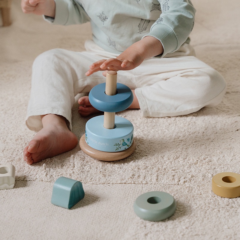 De houten tuimelpiramide van Little Dutch zorgt voor uren speelplezier! De blokjes hebben verschillende kleuren, vormen en afmetingen.