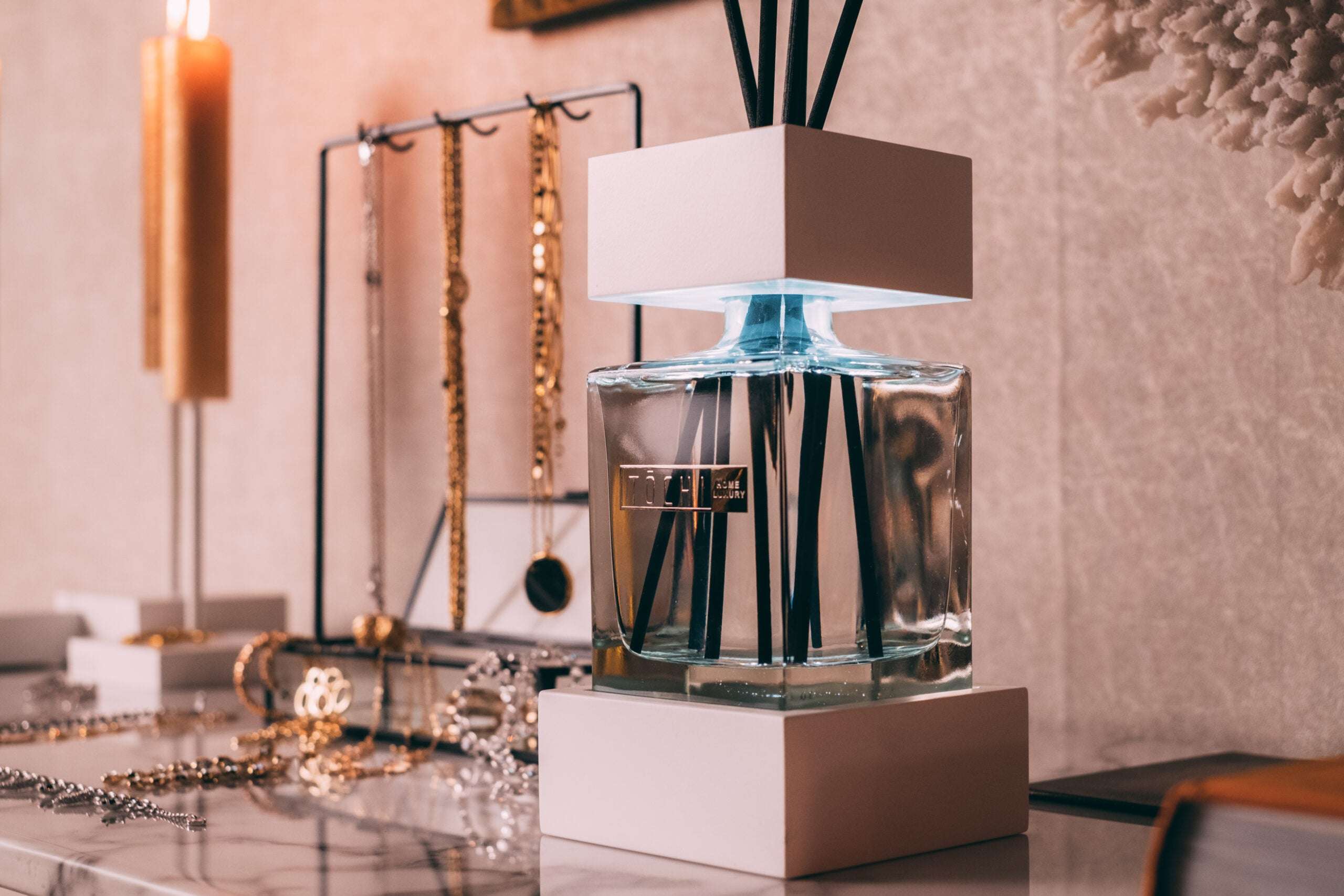 Deze exclusieve geur diffuser voorziet je woning voor lange tijd van een heerlijke geur. De geur wordt verspreidt door speciale geursticks. Deze absorberen het parfum en geven het af aan de omgeving. De 500ml parfumfles wordt geleverd met een speciaal daarvoor ontwikkelde bodem waarin verlichting is verwerkt. Door de geïntegreerde verlichting in de bodem wordt de fles van onder belicht. Hierdoor wordt uw huisparfum een bijzonder sieraad in uw woning.