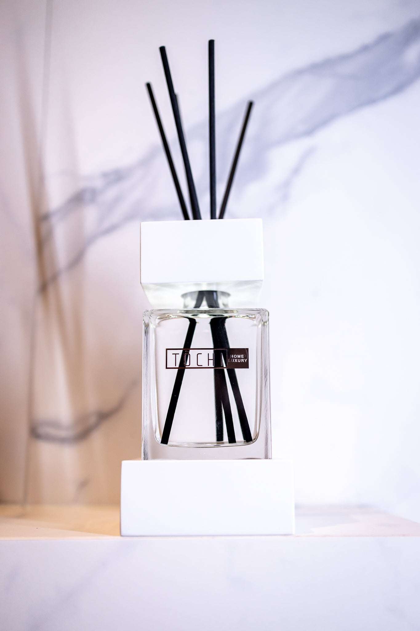 Deze exclusieve geur diffuser voorziet je woning voor lange tijd van een heerlijke geur. De geur wordt verspreidt door speciale geursticks. Deze absorberen het parfum en geven het af aan de omgeving. De 500ml parfumfles wordt geleverd met een speciaal daarvoor ontwikkelde bodem waarin verlichting is verwerkt. Door de geïntegreerde verlichting in de bodem wordt de fles van onder belicht. Hierdoor wordt uw huisparfum een bijzonder sieraad in uw woning.