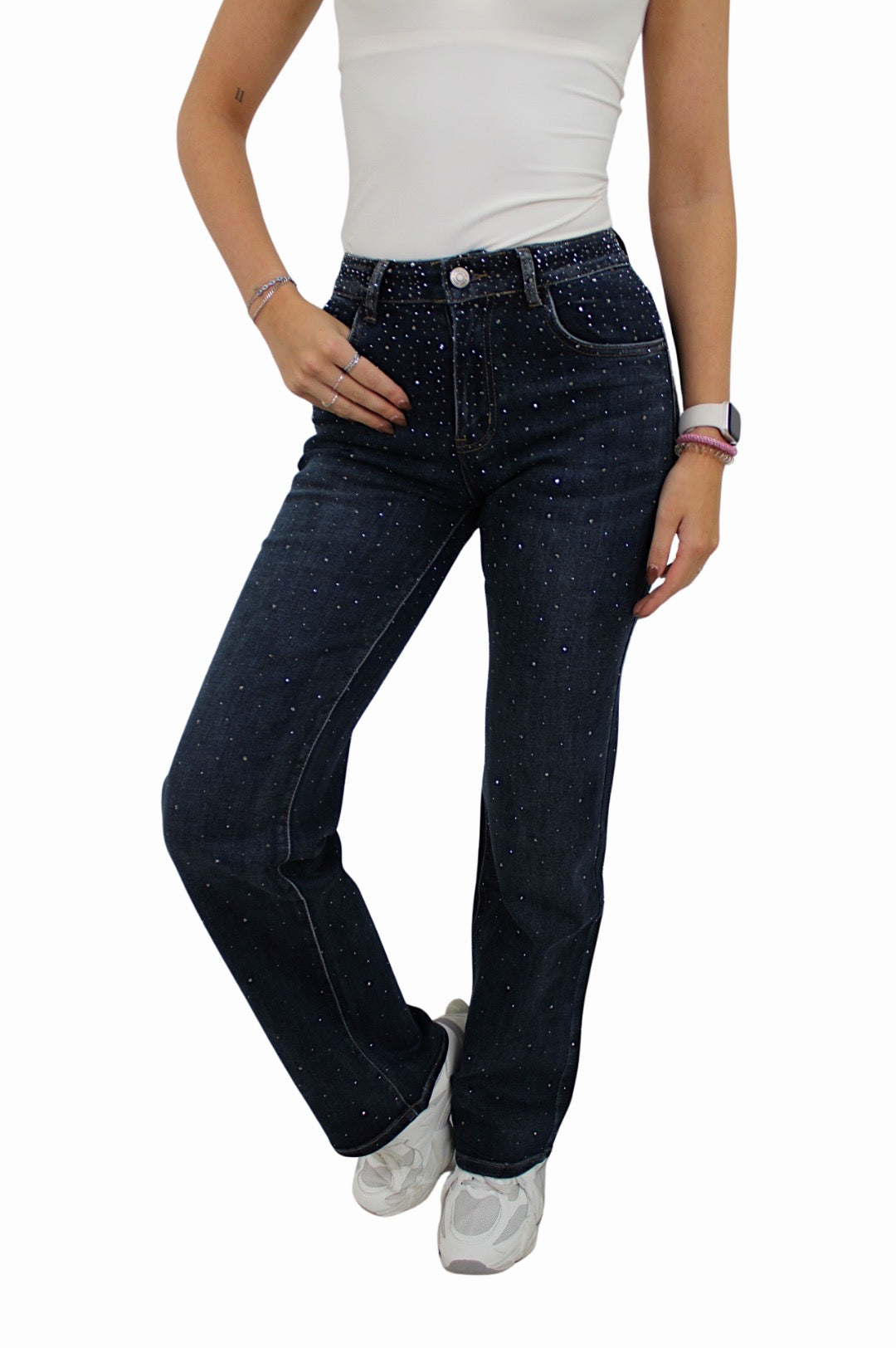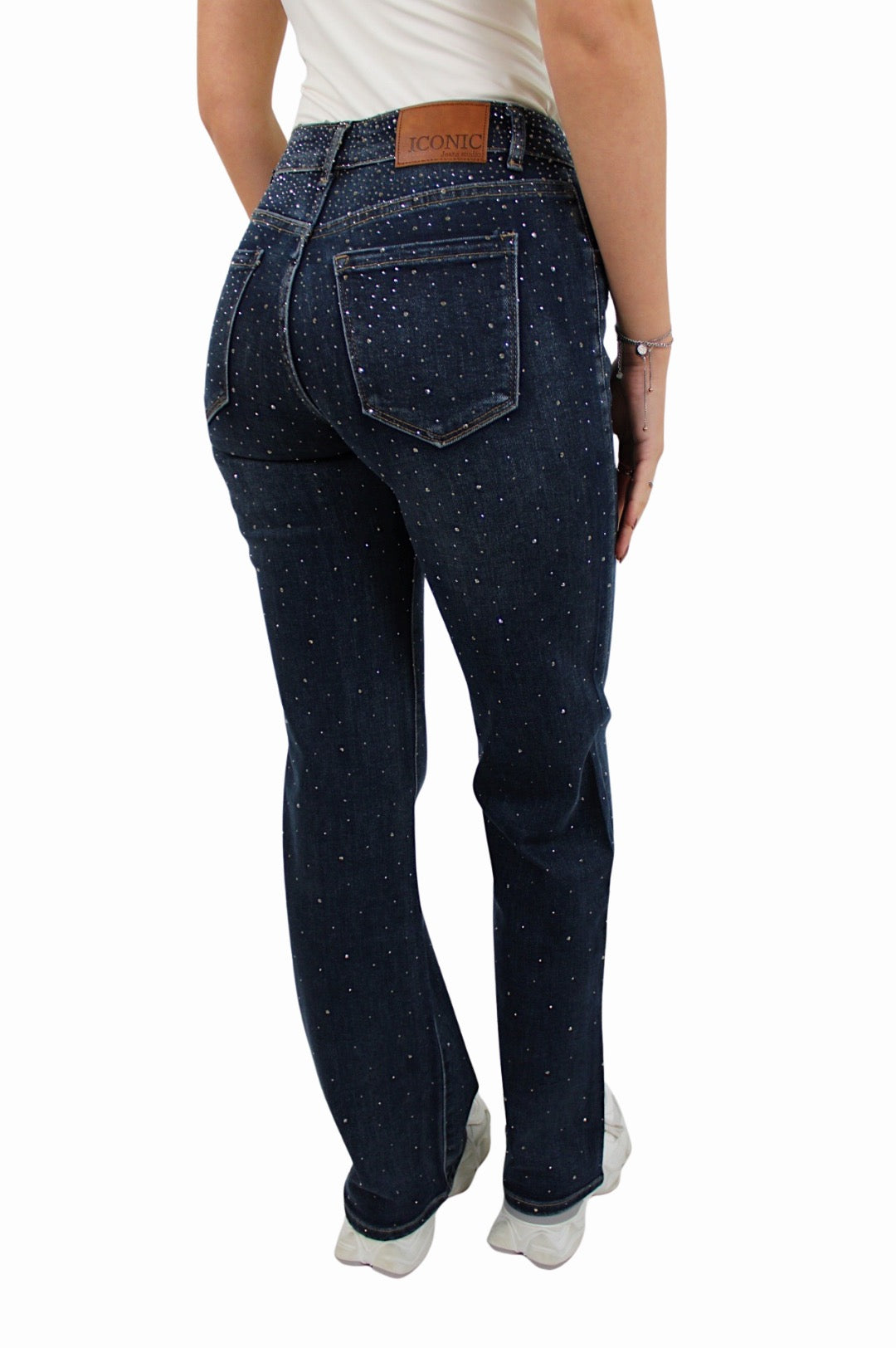 ICONIC GLITTER WIDE LEG JEANS | DARK BLUE - 32/XXS