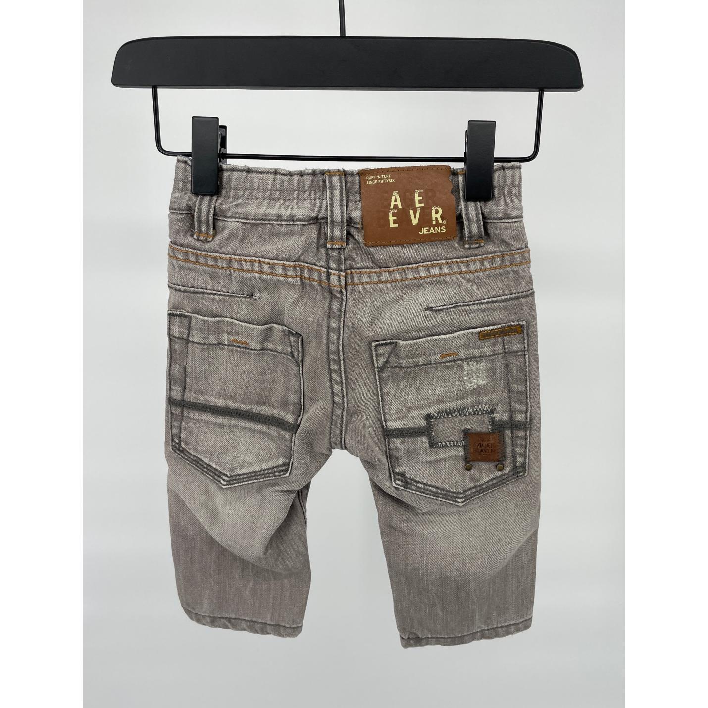 Grijze spijkerbroek van Eager Beaver in maat 68. Hij sluit met rits en schuifknoop en is binnenin met elastiek verstelbaar. De broek heeft allerlei stoere details en diverse zakken, zie foto's.
