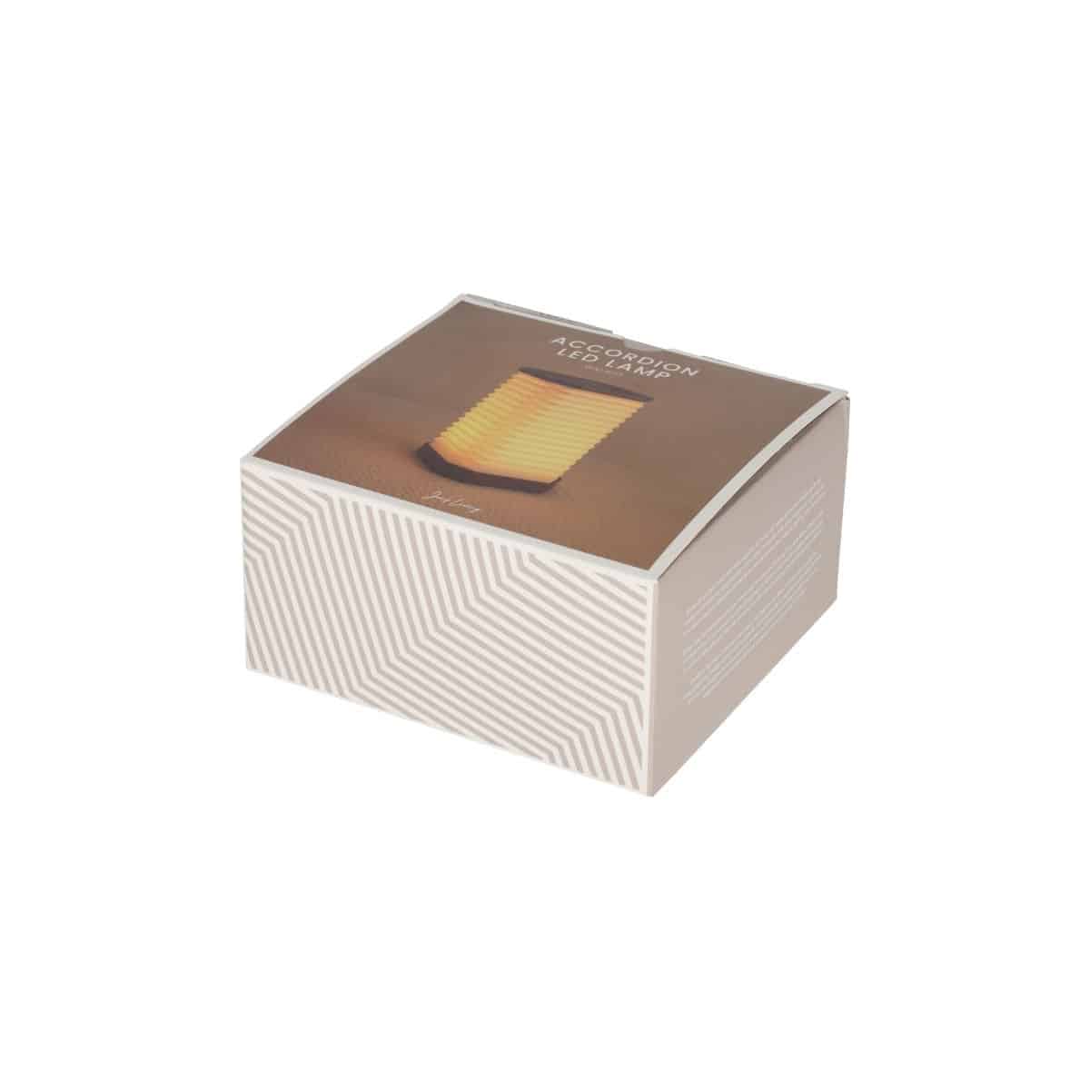 De Jens Living accordeon led lamp walnoot is oplaadbaar en gemaakt van papier en hout. Het gevouwen design in combinatie met het walnoothout zorgt voor een warme sfeer. De lamp is inklapbaar als een accordeon, je schuift hem in de gewenste grootte door aan beide uiteinden te trekken. De lamp is dimbaar door de aan/uit-knop ingedrukt te houden. De lamp is oplaadbaar middels de bijgeleverde USB-C kabel. Breng stijl en sfeer in huis met deze moderne accordeon led lamp walnoot.