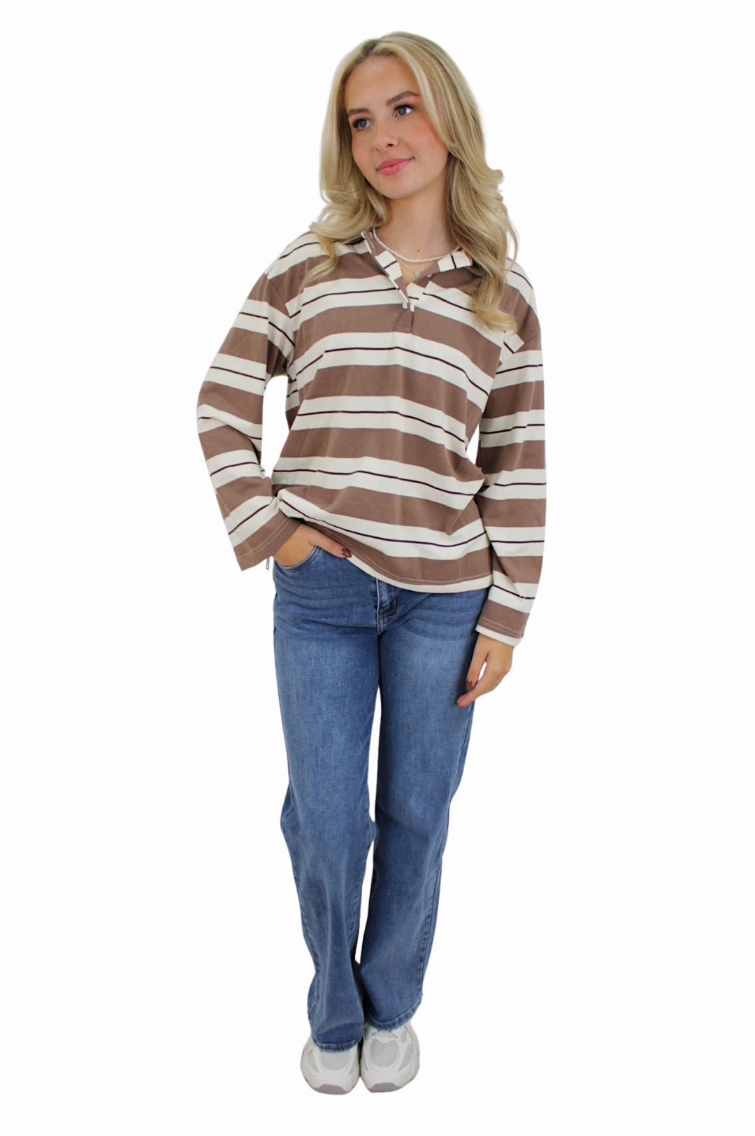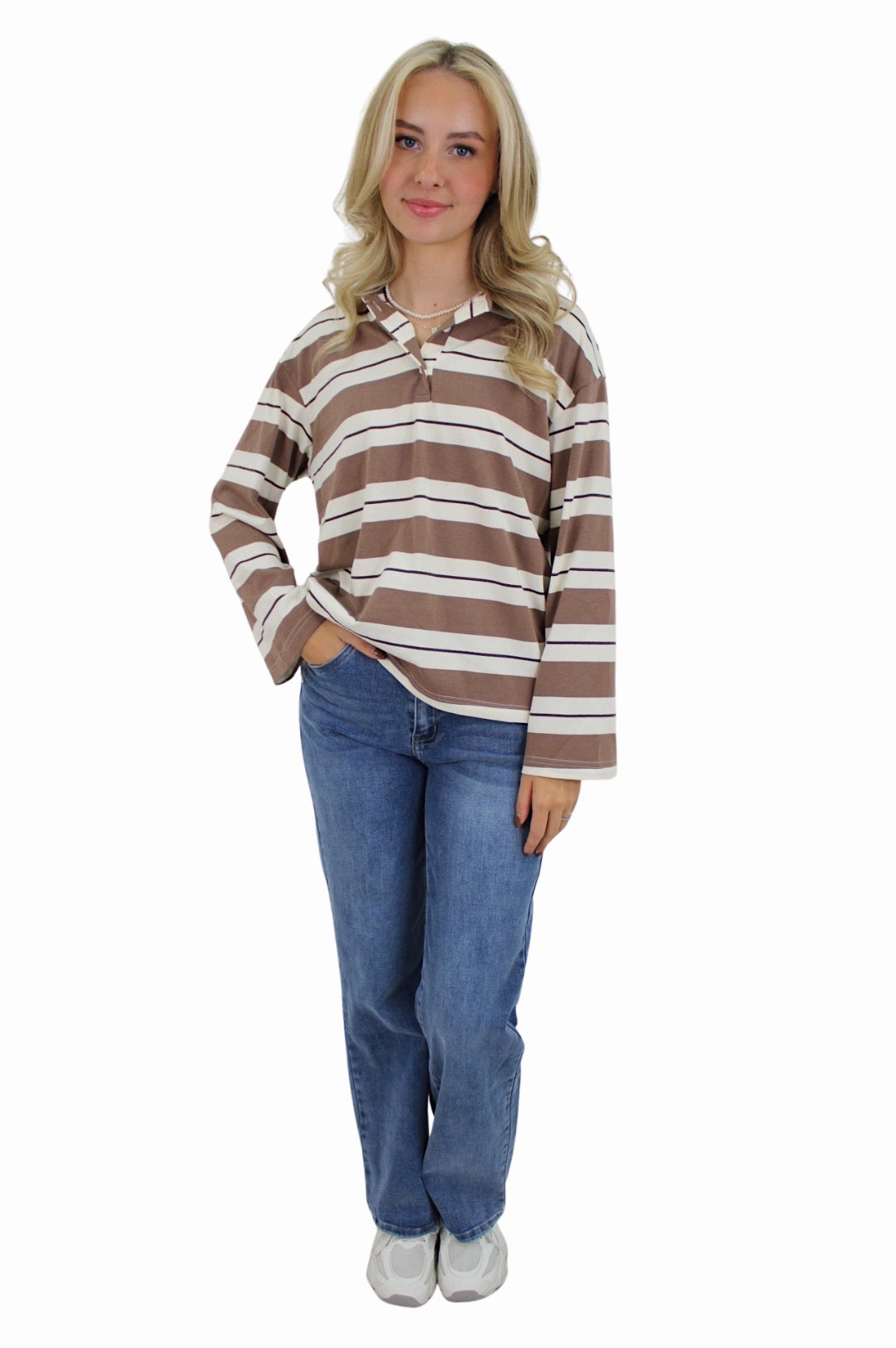 KATHY STRIPED POLO | TAUPE/WHITE - S/M