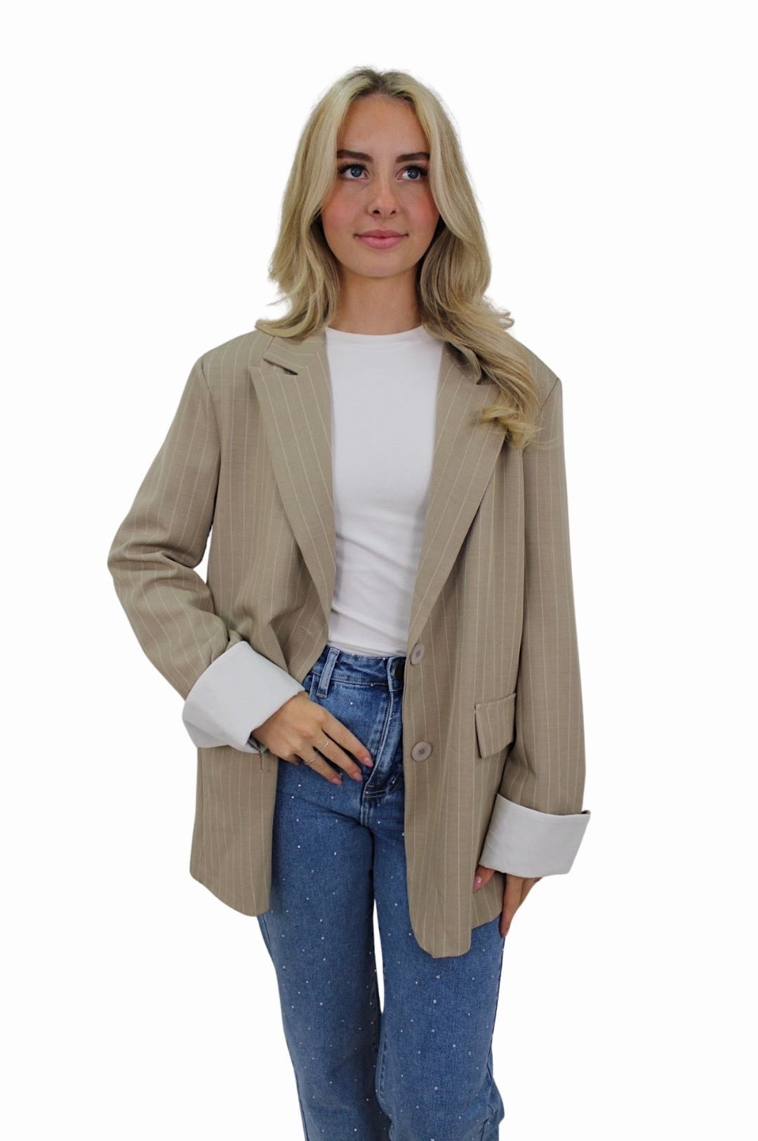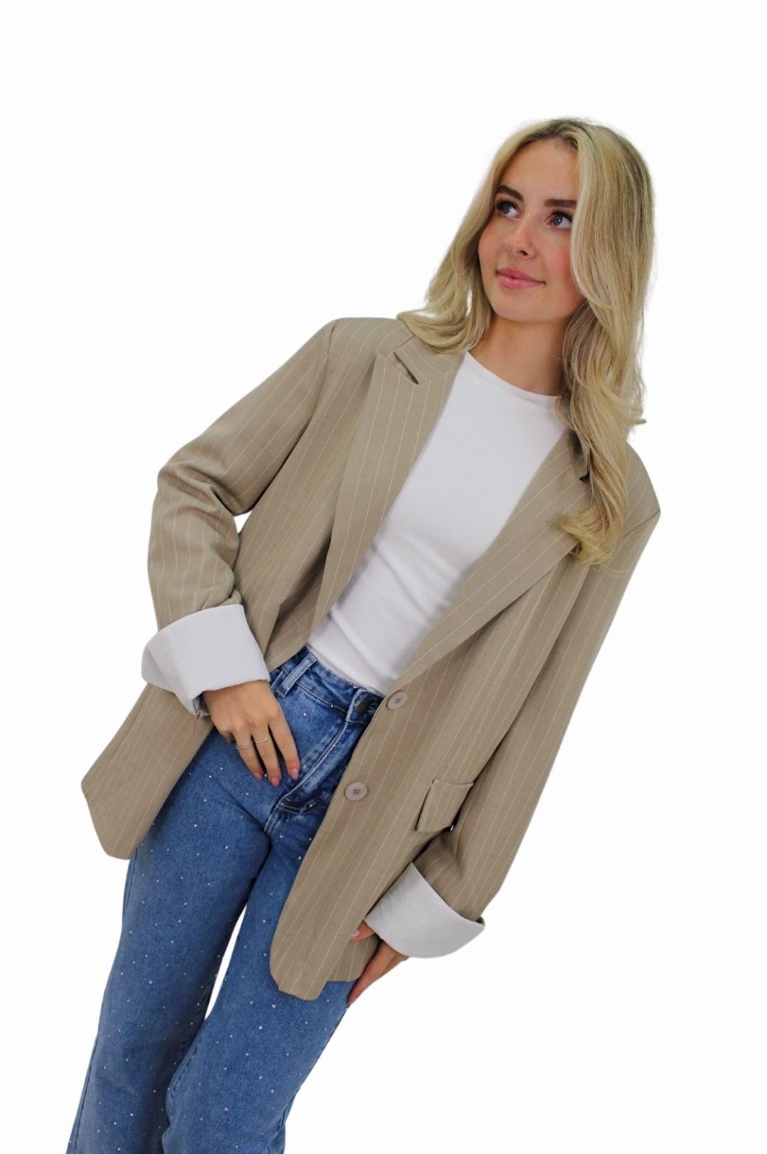 - Leuke oversized blazer met strepen en leuk detail bij de mouwen.