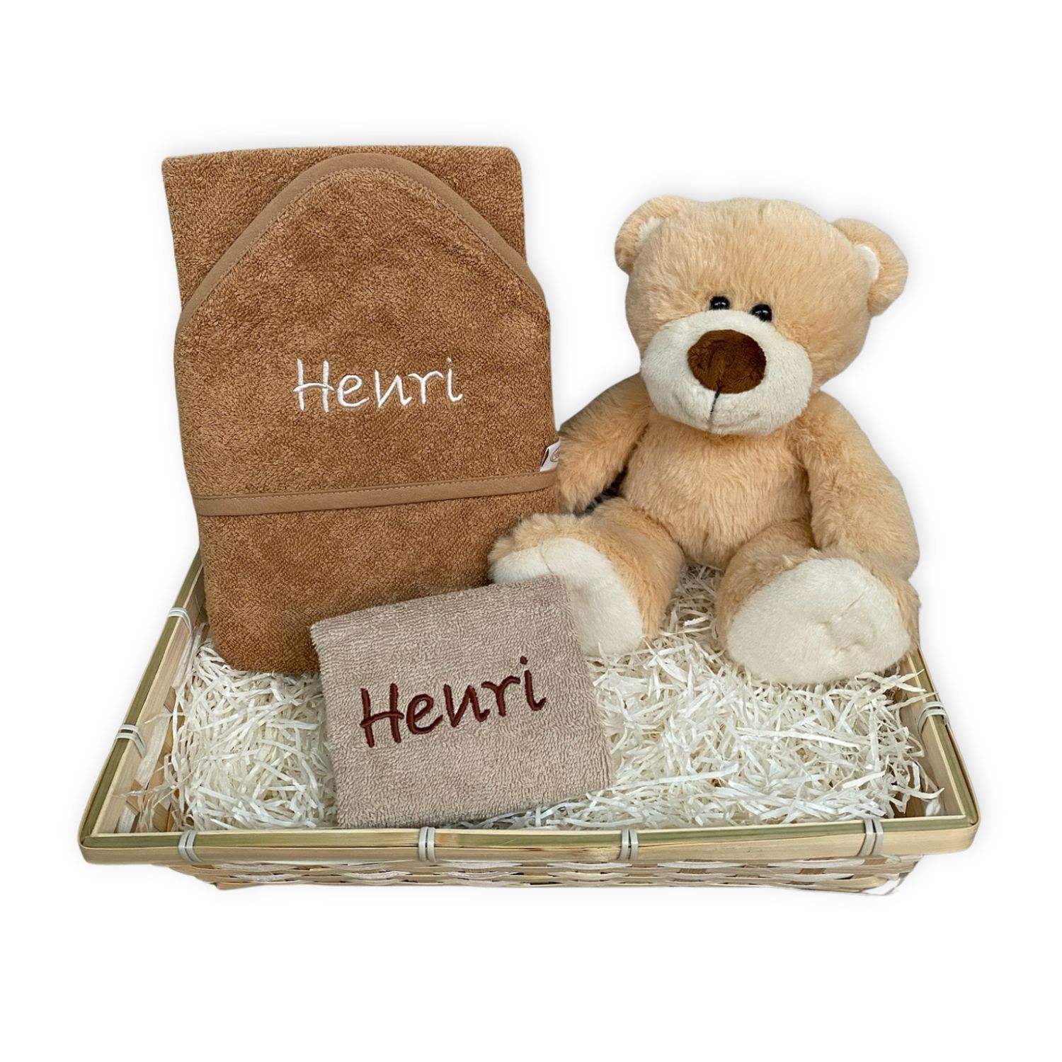 We hebben ook bijpassende knuffels en samengestelde kraammanden met naamcadeaus