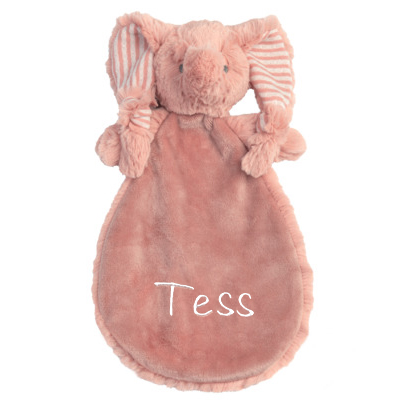 – Olifant Emily knuffeldoekje met naam geborduurd (lichtroze letters)