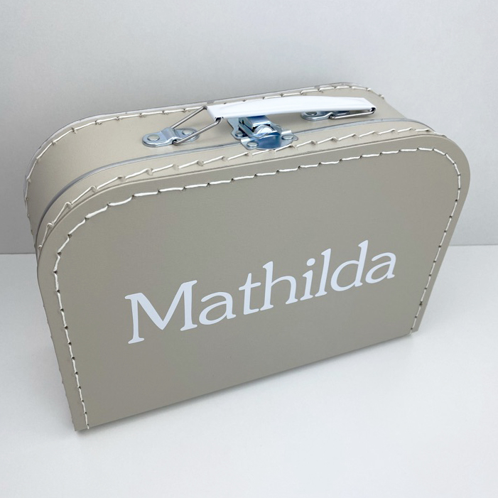 Dit koffertje is gevuld met een slabbetje geborduurd met naam en de vrolijke knuffel leeuw Luke van het merk Happy Horse.