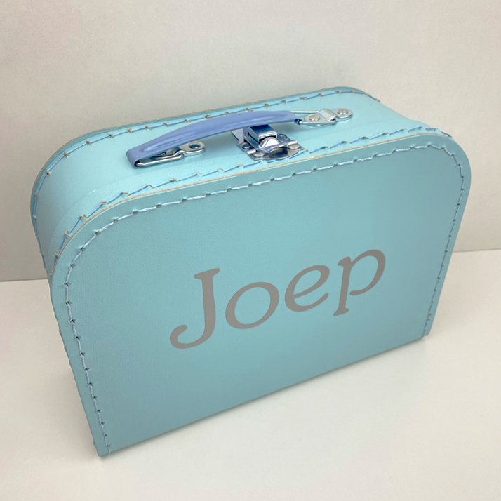 Het koffertje is 25 cm groot en leuk om de eerste spulletjes in te bewaren, of om later mee te spelen.