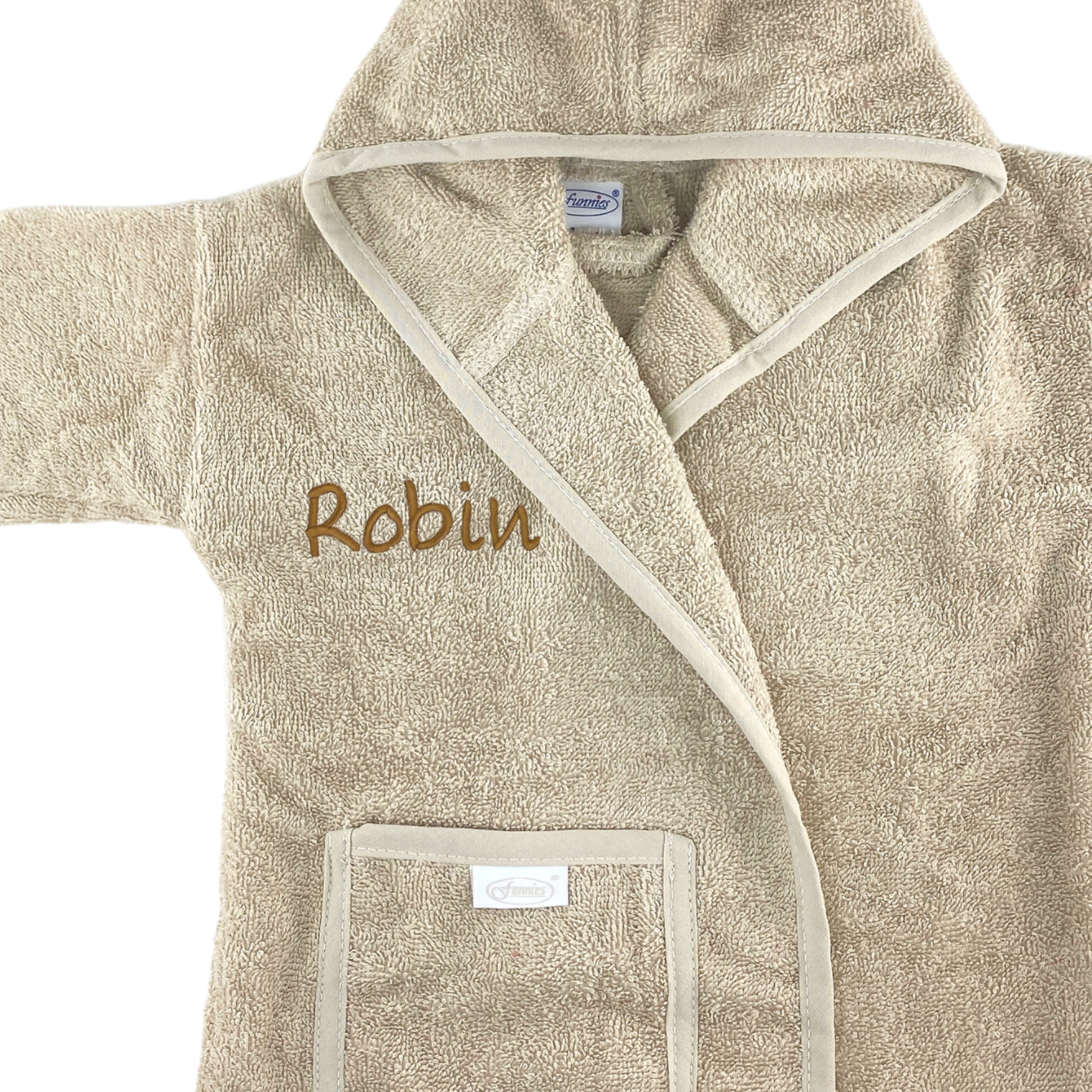 We stoppen de zachte uil samen met een gepersonaliseerde badjas in de mand. Niet te groot, niet te klein, maar precies goed! Je kunt zelf de kleur van het badjasje, het lettertype en de kleur van het borduurgaren kiezen.