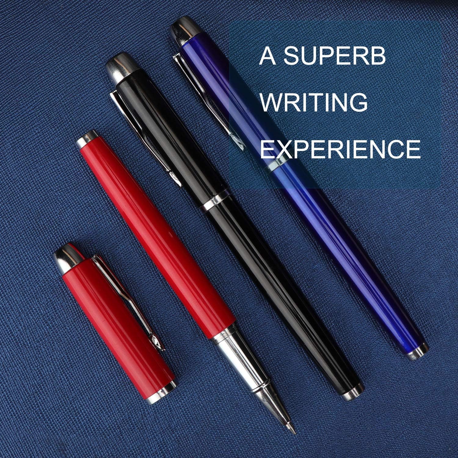 Laat een blijvende indruk achter met deze elegante en hoogwaardige rollerbalpen - Zwart/Rood/Blauw