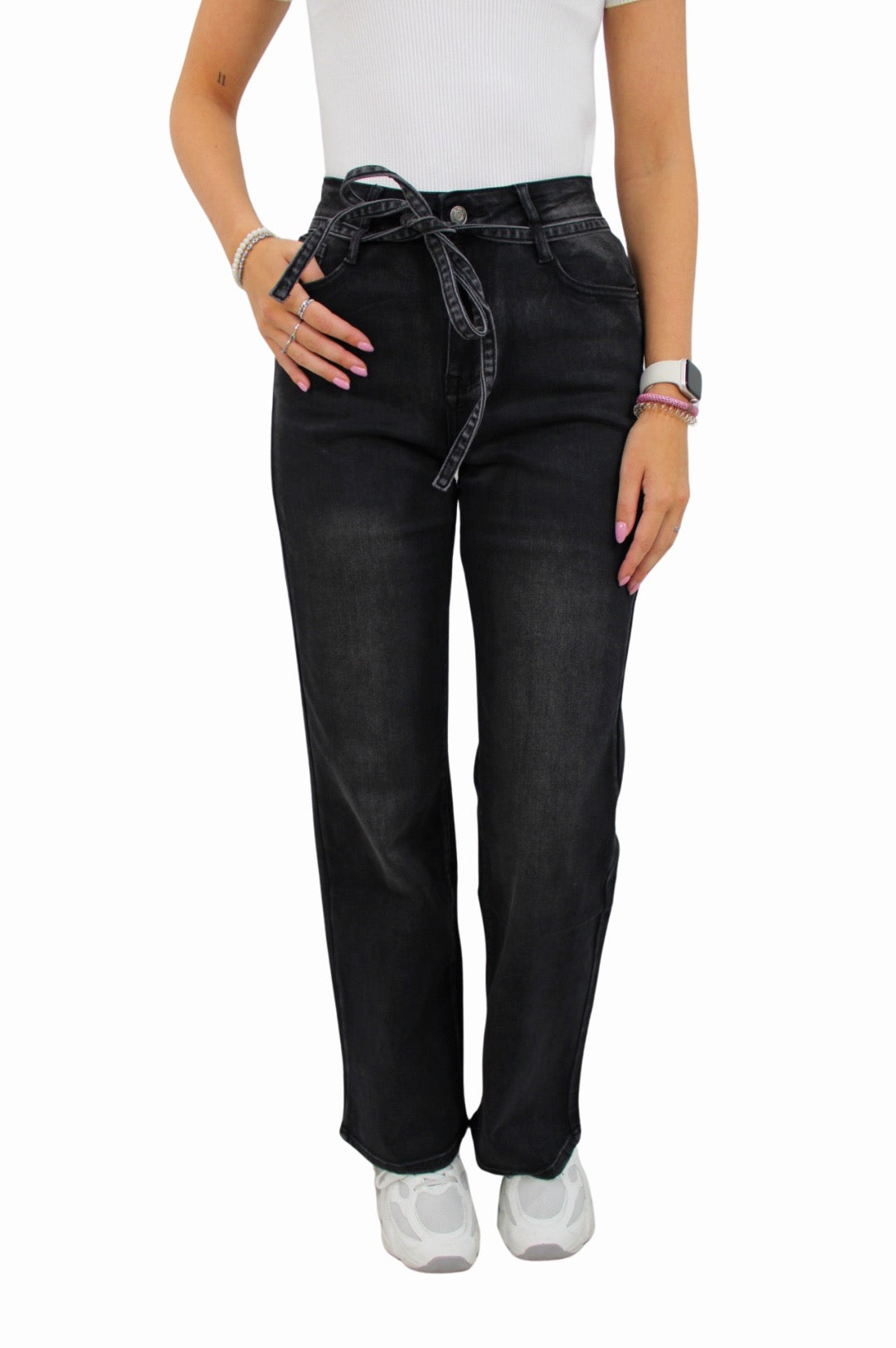 LAULIA BELT STRAIGHT LEG JEANS | BLACK - 34/XS