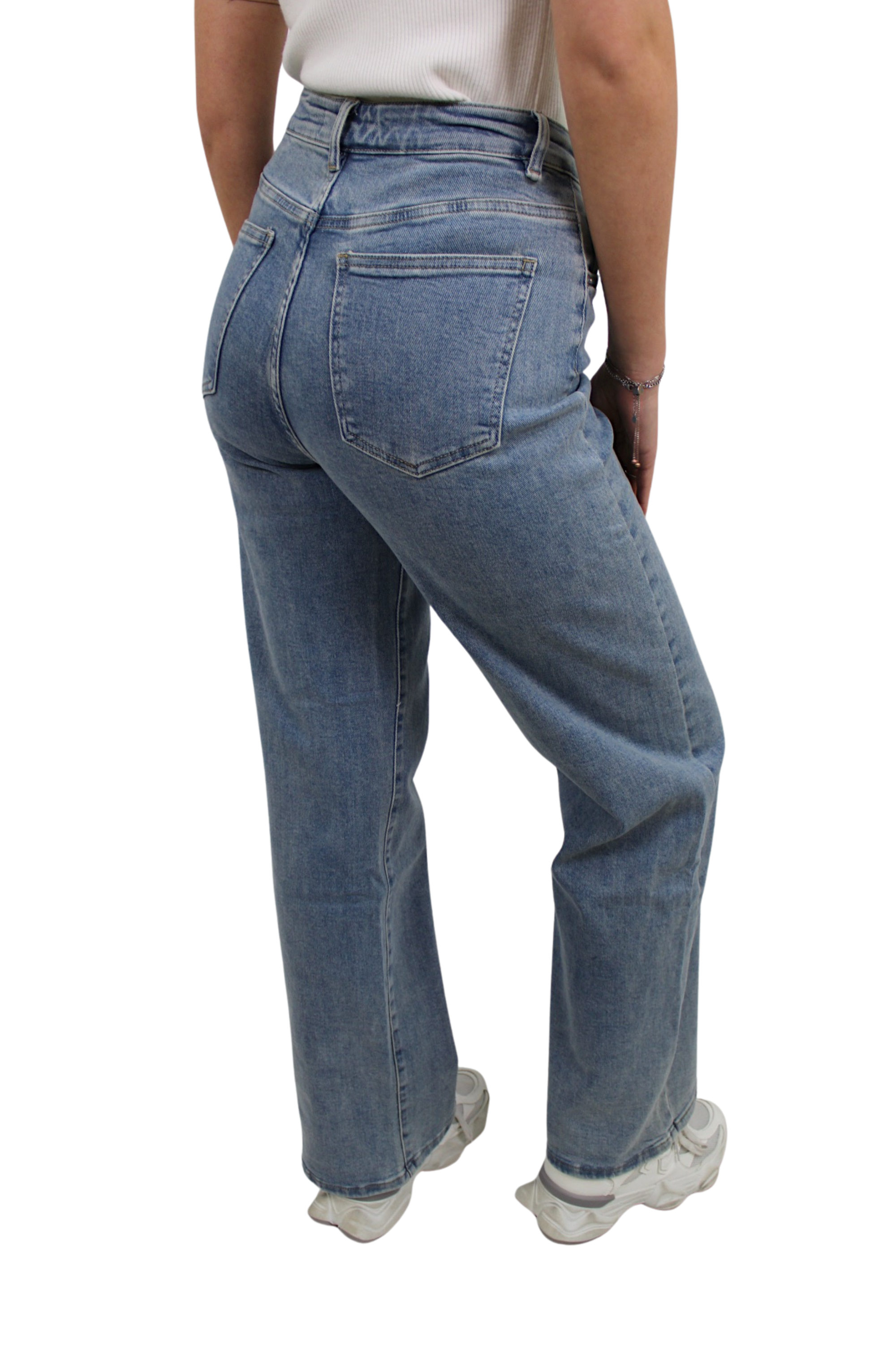 - De jeans heeft een wide leg model.