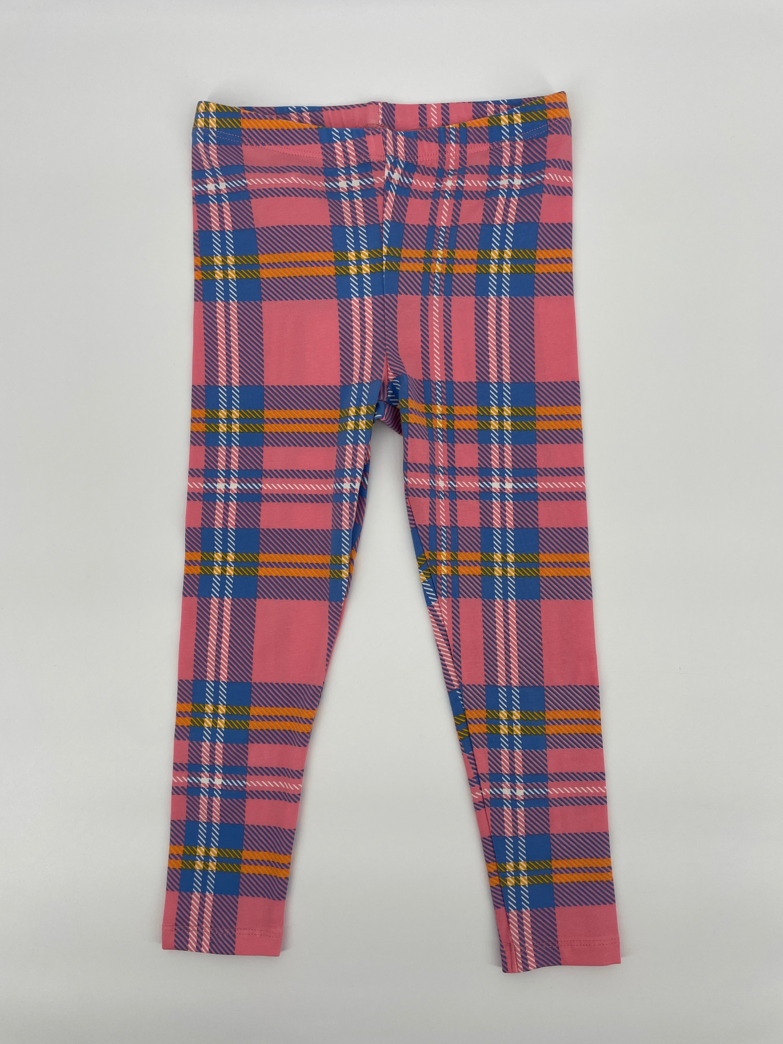 Roze geruite legging van Mini Rodini in maat 92 / 98. Elastische tailleband.