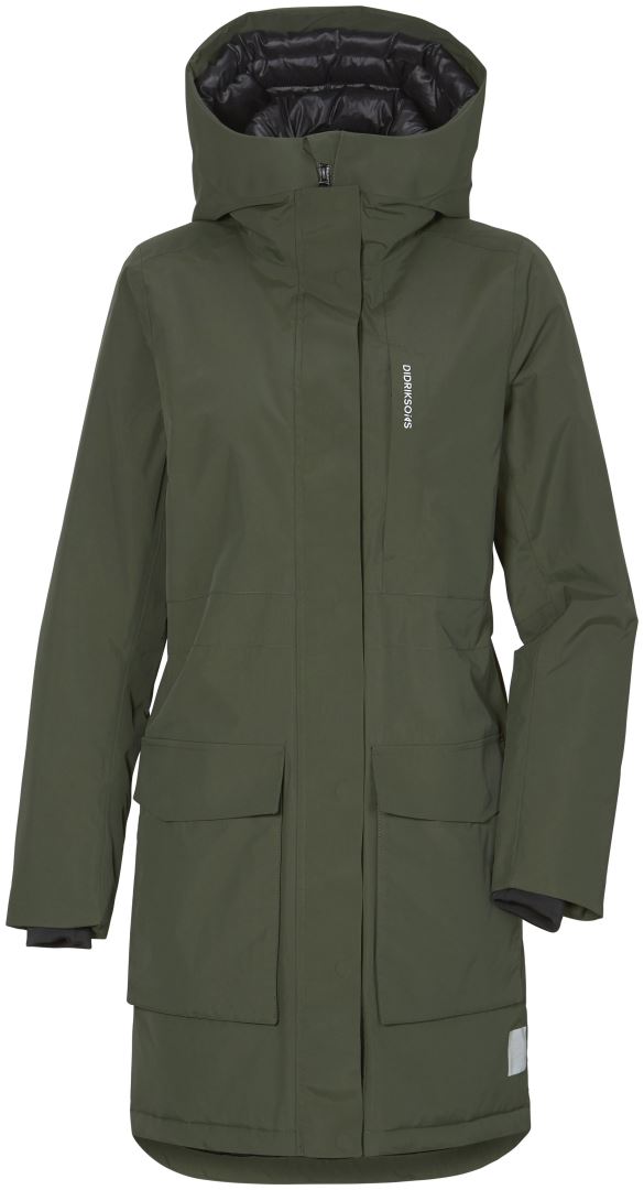 Deze Didriksons is parka geschikt voor dagelijks gebruik. De jas heeft een sportieve look en beschikt over diverse functionele details. De jas is verkrijgbaar in twee lengtes en is gemaakt van 50% gerecycleerd polyamide, zacht met een niet glimmend oppervlak. De parka heeft comfortabele details zoals ECO padding, een capuchon en een split aan de zijkant voor grotere mobiliteit. Tevens heeft de jas verschillende reflecterende details. Deze jas heeft een rechte pasvorm en is NIET getailleerd.