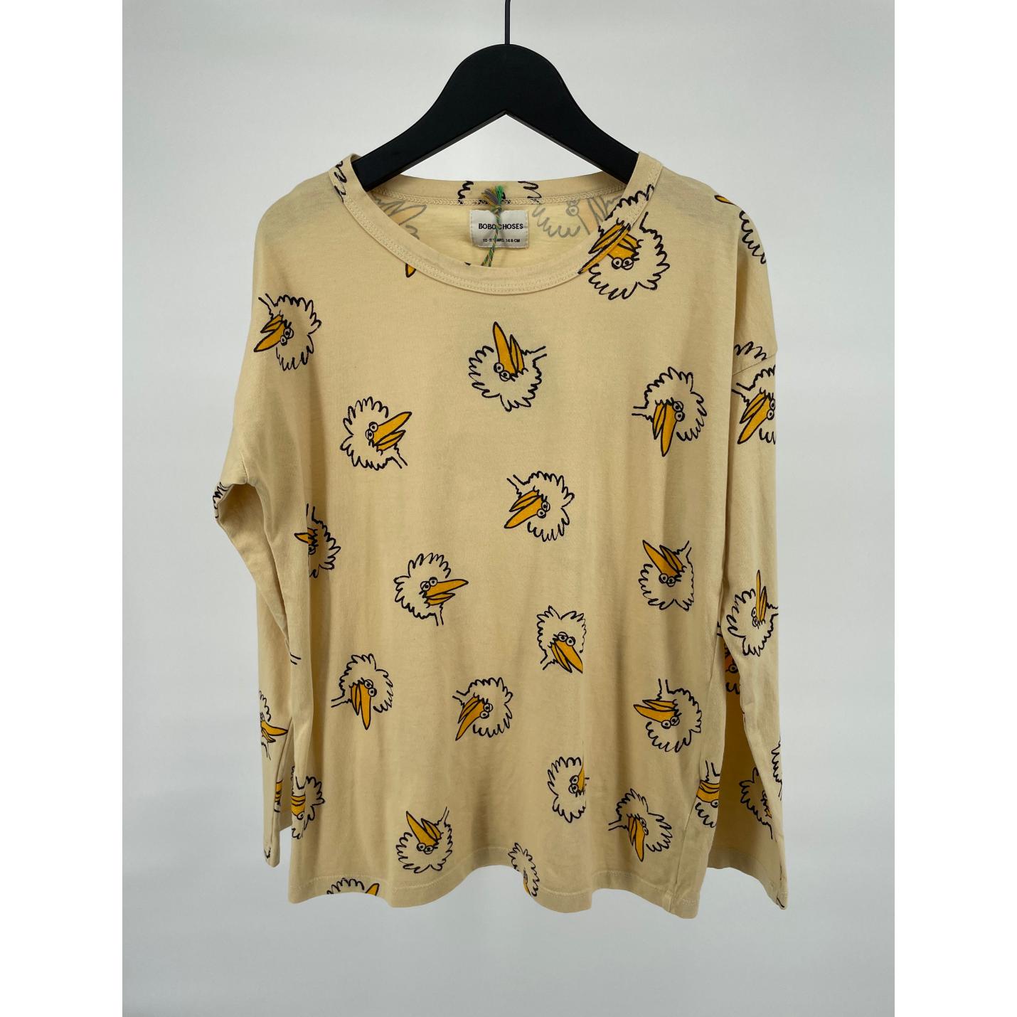 Gele longsleeve met all over vogel print van Bobo Choses in maat 140 / 146.