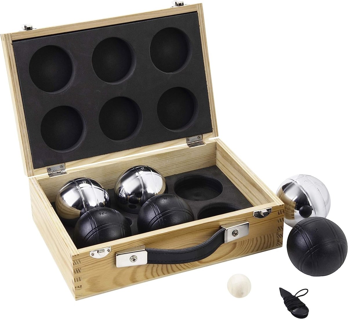 - Elegantie in hout: De meegeleverde houten petanque koffer straalt klasse uit en zorgt voor een luxe uitstraling van het spel.
