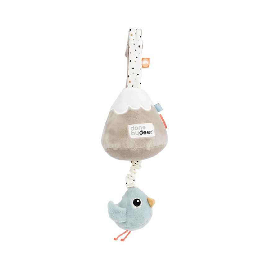Het muziekdoosje Birdee van Done by Deer is gemakkelijk te bevestigen aan het ledikantje of box. Leuk om cadeau te geven voor een babyshower of als kraamcadeau. Het muziekdoosje speelt de melody ‘Over the rainbow’.
