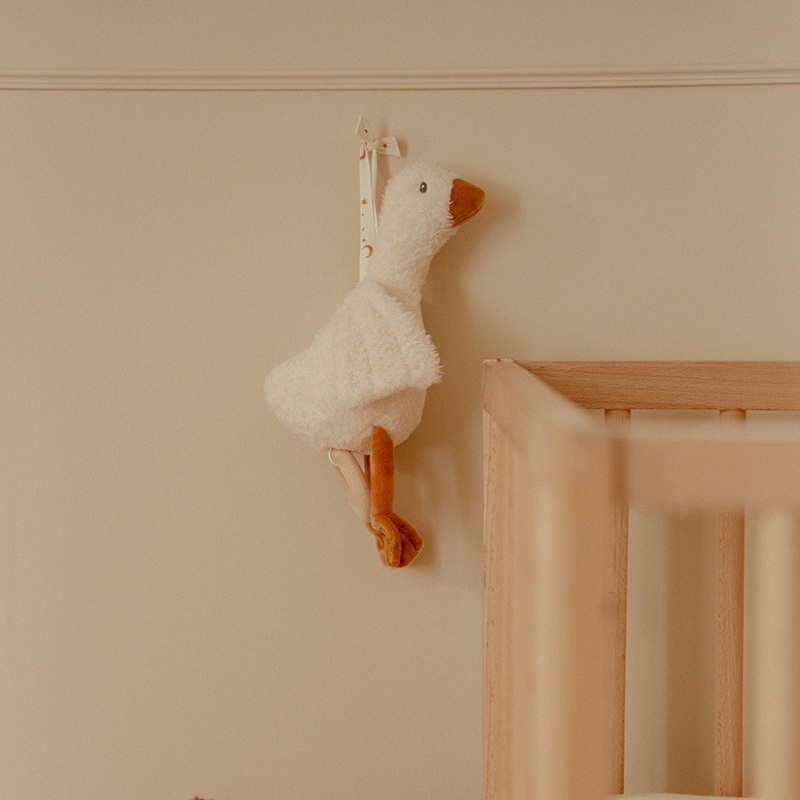 Met het lusje is het muziekdoosje Little Goose gemakkelijk te bevestigen aan het ledikantje of in de box.