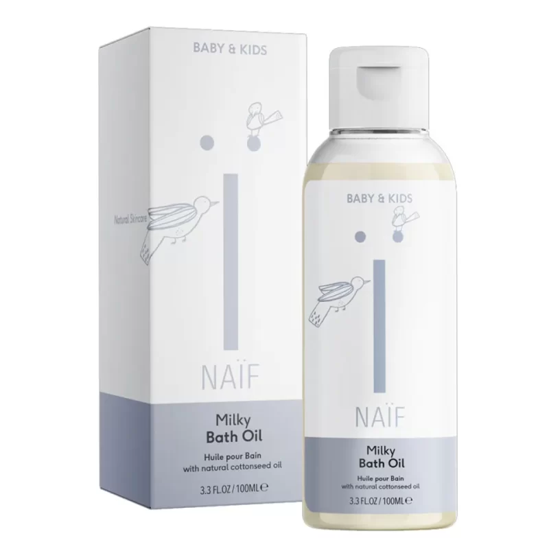 Met de Naïf Milky Badolie kun je met een gerust hart genieten van het badderen met je kleintje, wetende dat hun tere huid wordt verzorgd en beschermd met natuurlijke en zachte ingrediënten. Het is de perfecte keuze voor een ontspannend badmoment voor jou en je baby.