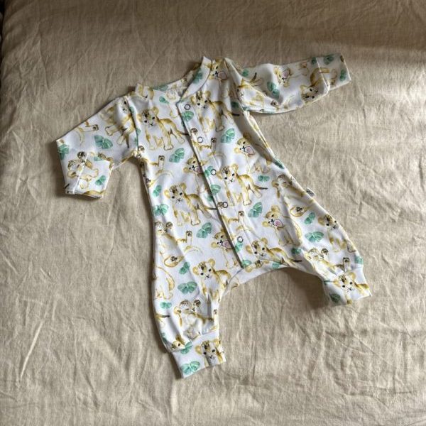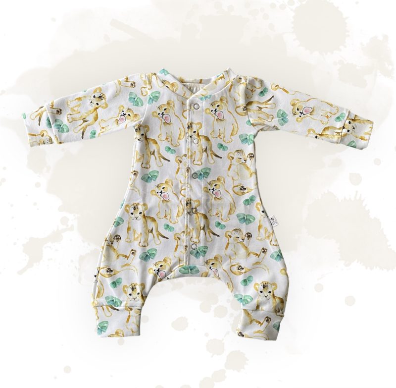 Stap in de wereld van schattige en praktische babykleding met dit lieve Boxpakje Leeuw. In een subtiele off-white tint met een schattige print van leeuwtjes, straalt dit handgemaakte boxpakje zowel stijl als gemak uit.