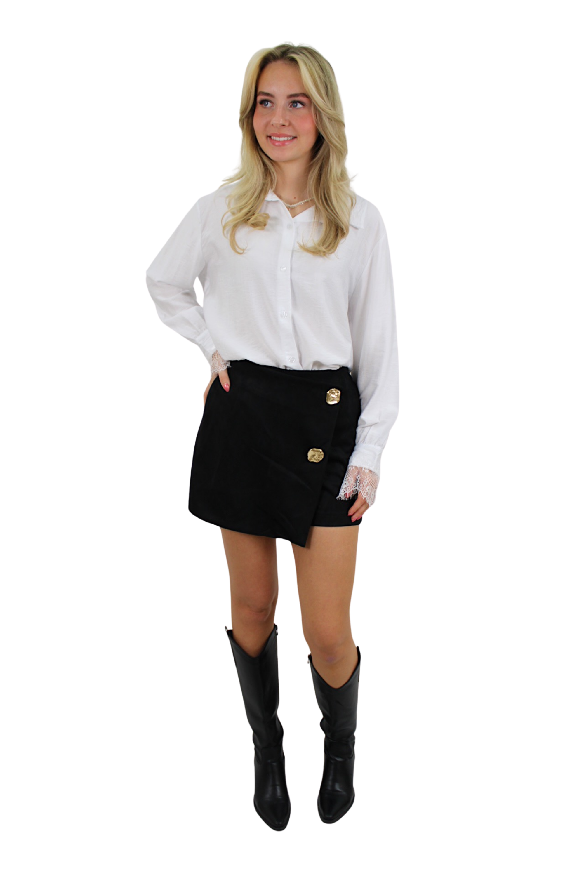 - Leuke suede broekrok met leuke goude details.