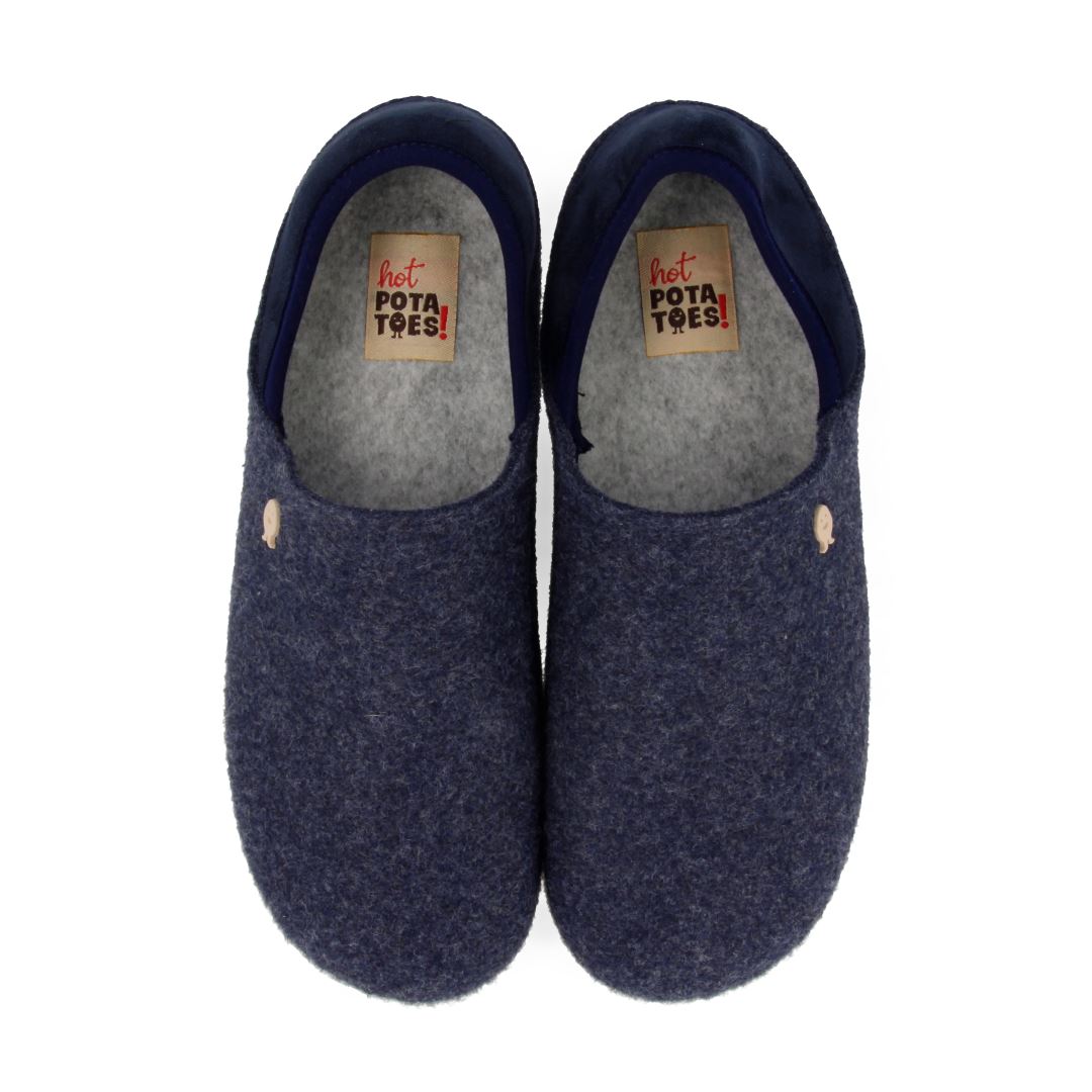 Wanneer je aan een dagje binnenshuis denkt, denk je aan knus en comfy. En dat is precies waar Hot Potatoes aan denkt bij het ontwerpen van de sloffen. Alle sloffen hebben daarom van een leuk uiterlijk, maar ook een comfy inlegzool die, als je dan tóch de bank moet verlaten, je voeten en demping en ondersteuning biedt waar je dat nodig hebt. | Hot Potatoes pantoffel voor heren met hielsluiting. Comfortabel en Made in Spain. Vervaardigd van polyester en de zool is van natuurlijk rubber met gerecyclede kunststof snippers. Met uitneembare inlegzool van 100% gerecycled PU. Hot Potatoes zijn koud wasbaar.