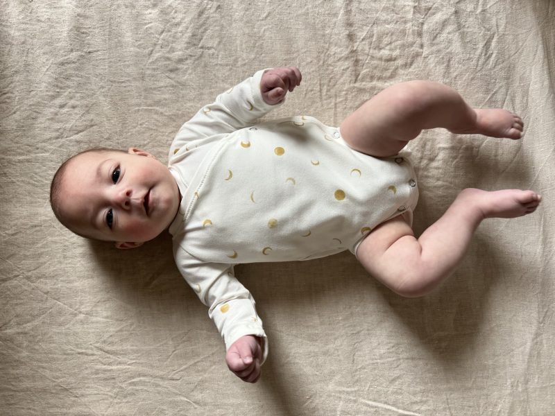 De Overslagromper Maantjes sluit met een overslag en drukknoopjes en kan helemaal open. Hierdoor is het eenvoudig om je baby aan te trekken. Op deze manier is het aankleden van jouw baby veel makkelijker en het kost jouw baby minder energie. Deze energie kan je baby goed gebruiken om verder te groeien.