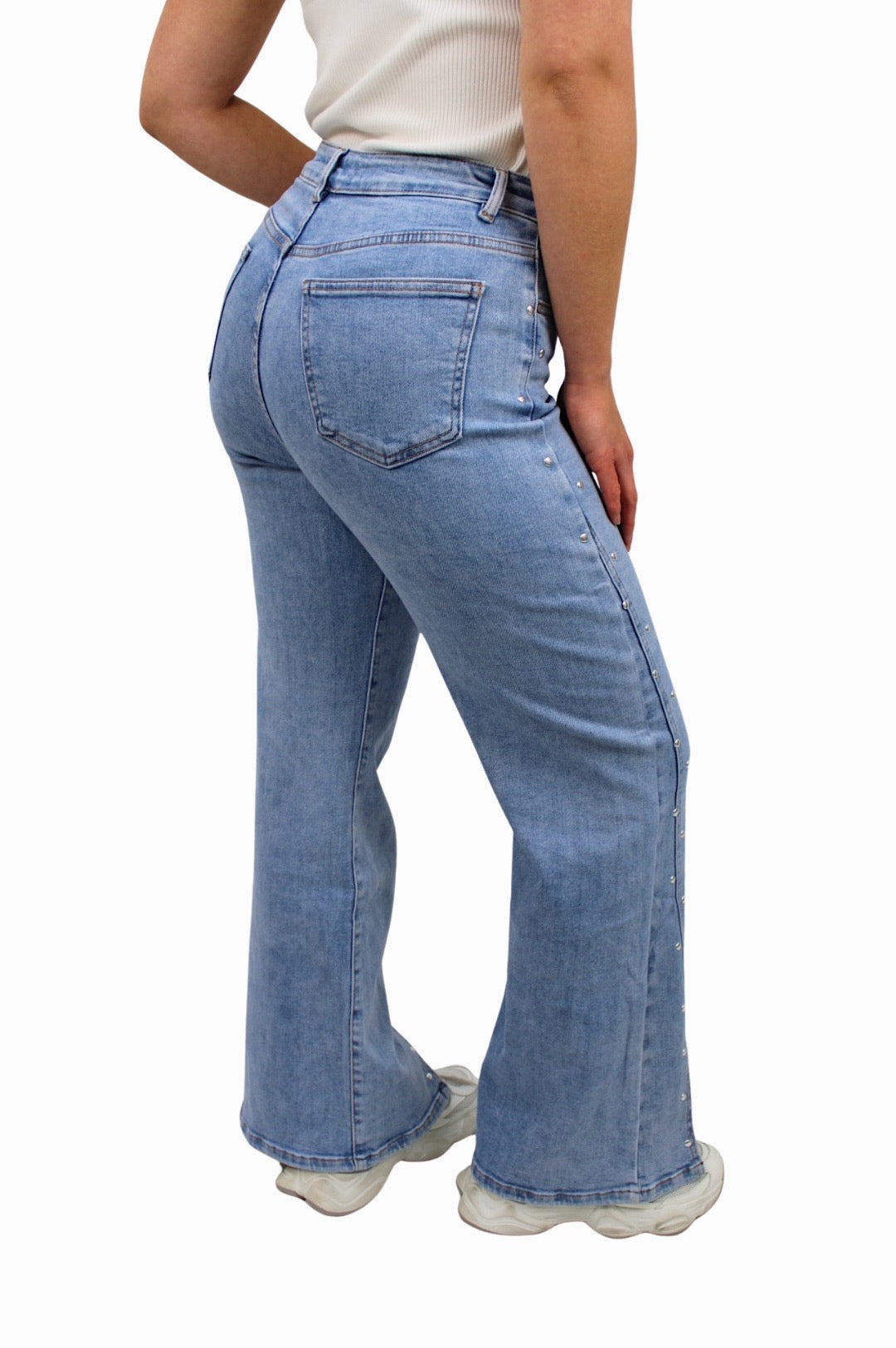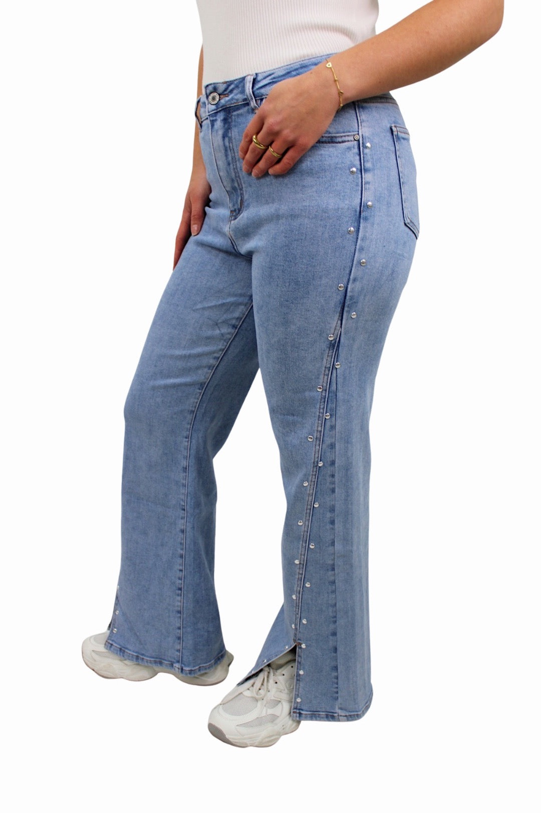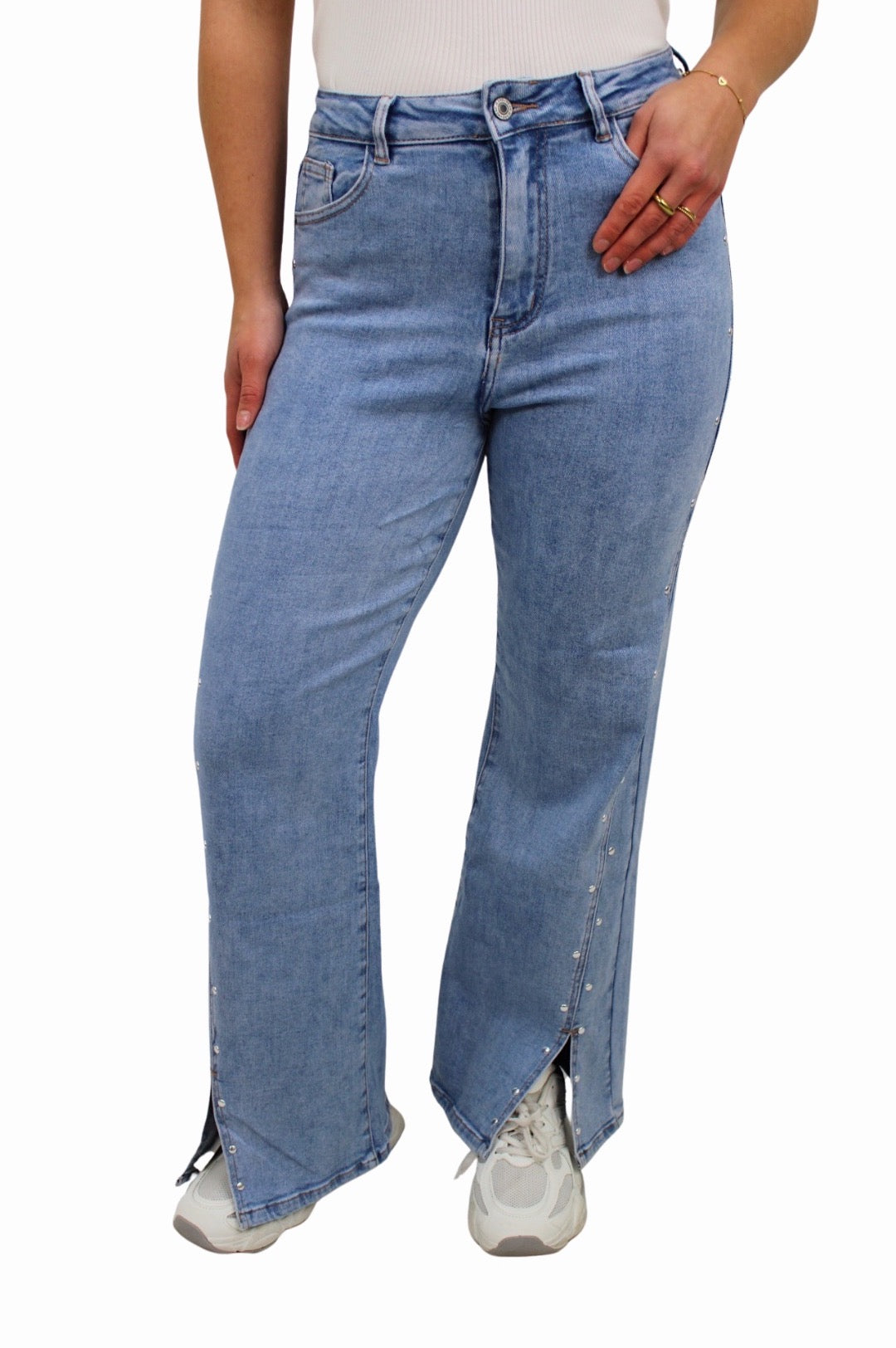 PETITE STUDS SPLIT JEANS ST6090-2 | LIGHT BLUE - 34/XS