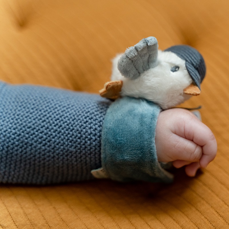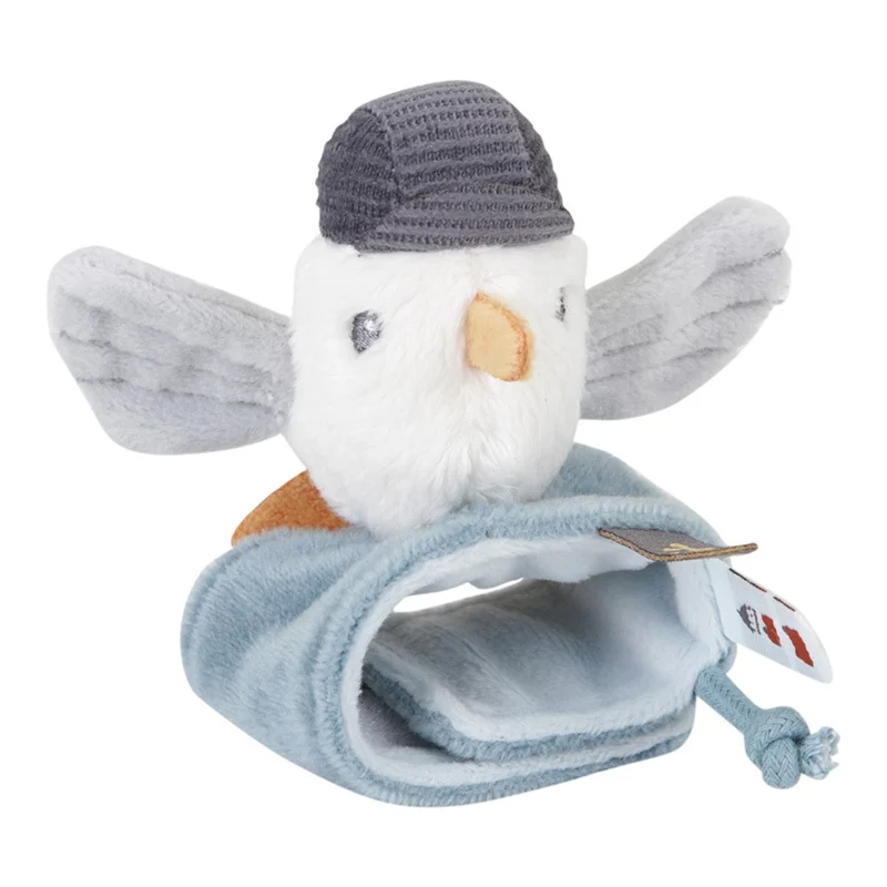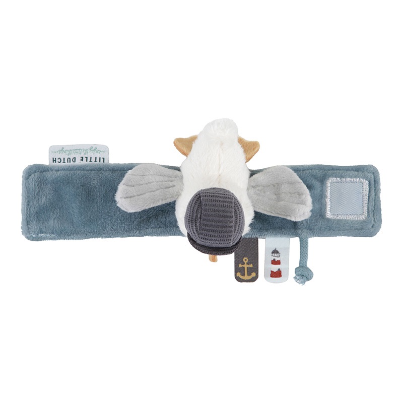 De polsrammelaar Sailors Bay van Little Dutch is een speeltje wat vanaf de geboorte gebruikt kan worden. De rammelaar kan met zacht klittenband om de pols van de baby worden vastgemaakt. De rammelaar is gemaakt van zachte materialen met zachte tinten. De rammelaar trekt de aandacht van de baby en stimuleert de zintuigen. Dit zorgt voor een leuke en educatieve speelervaring. Door het spelen met de polsrammelaar ontwikkelt de baby zijn motorische vaardigheden en hand-oog coördinatie.
