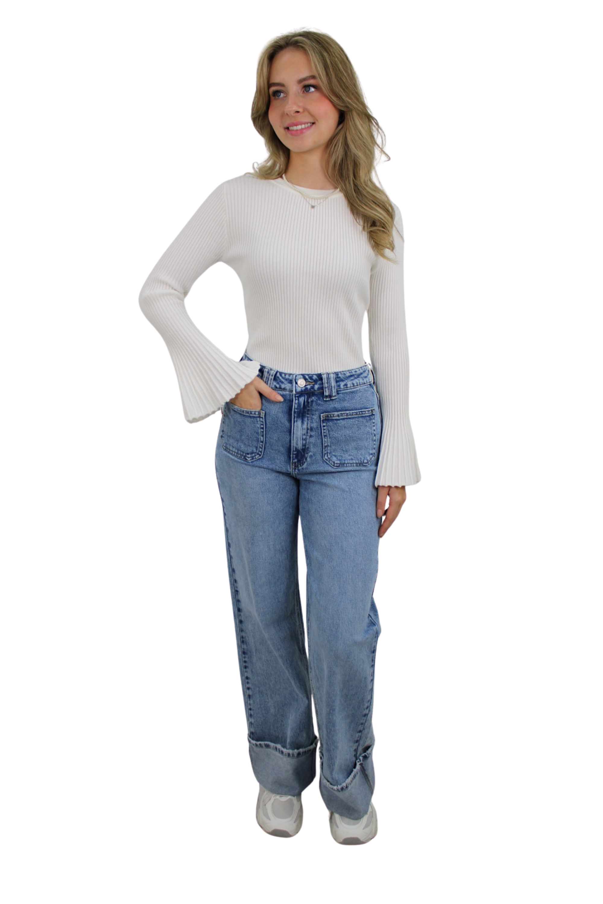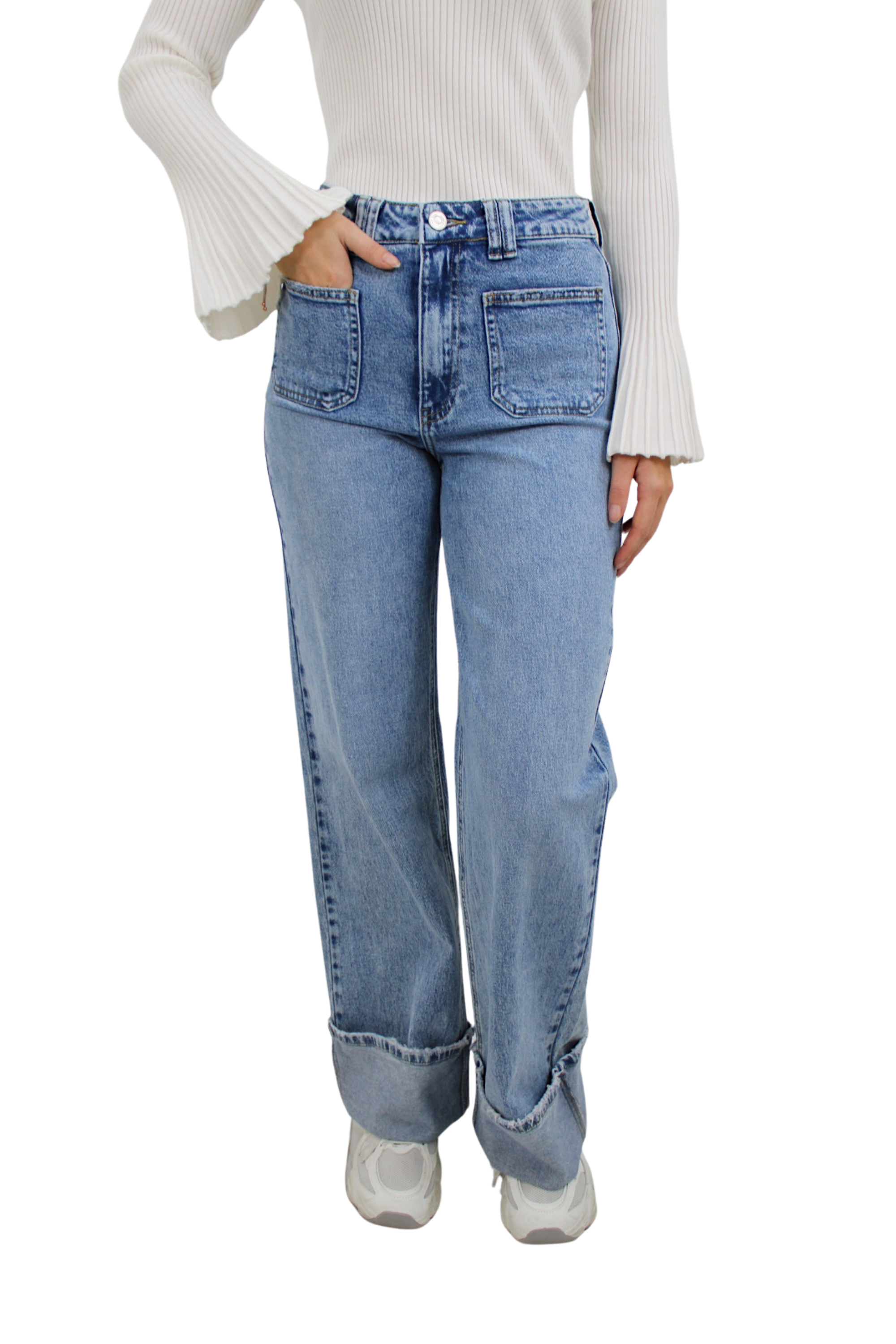- De jeans heeft een high waist model en een leuke omgeslagen onderkant.