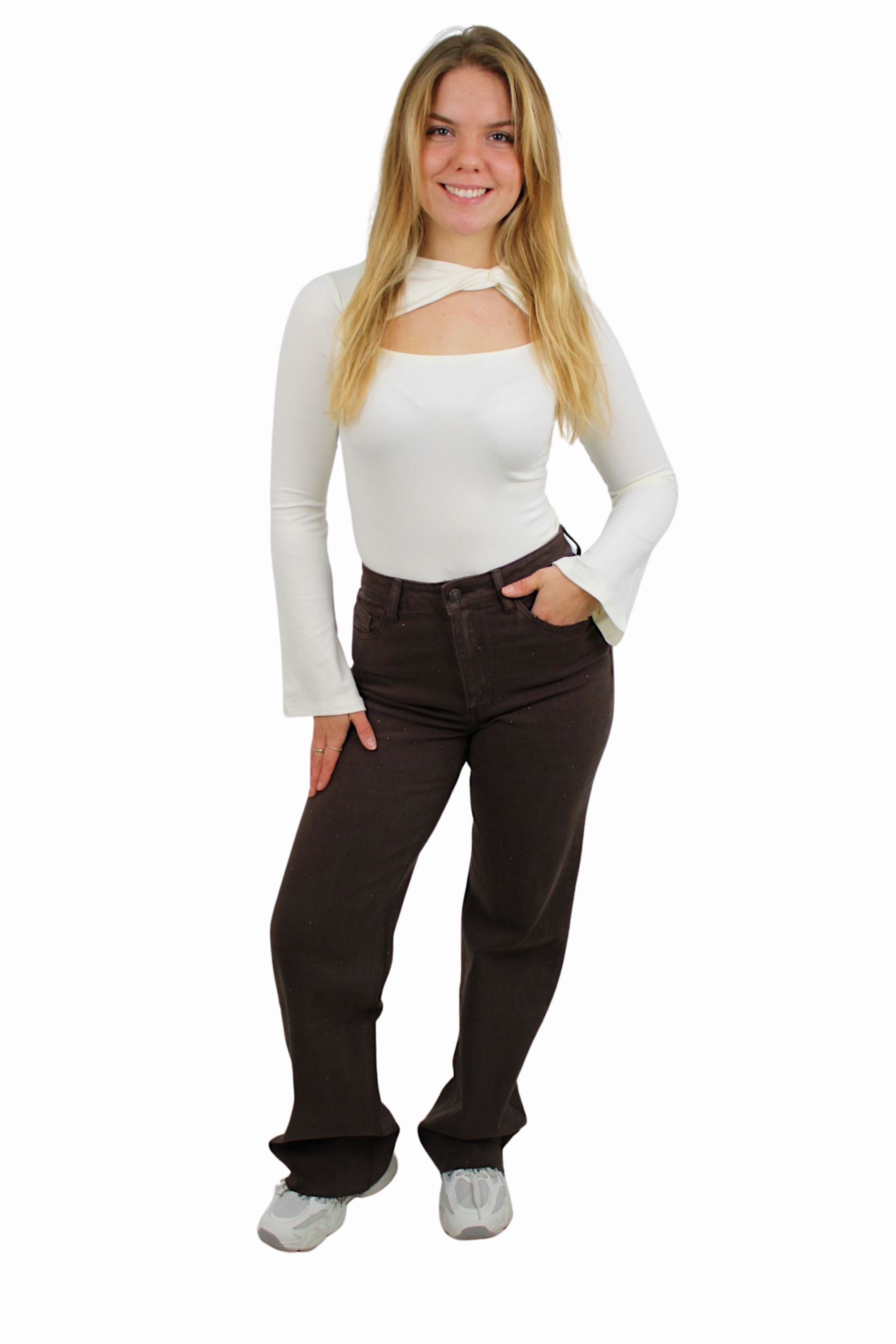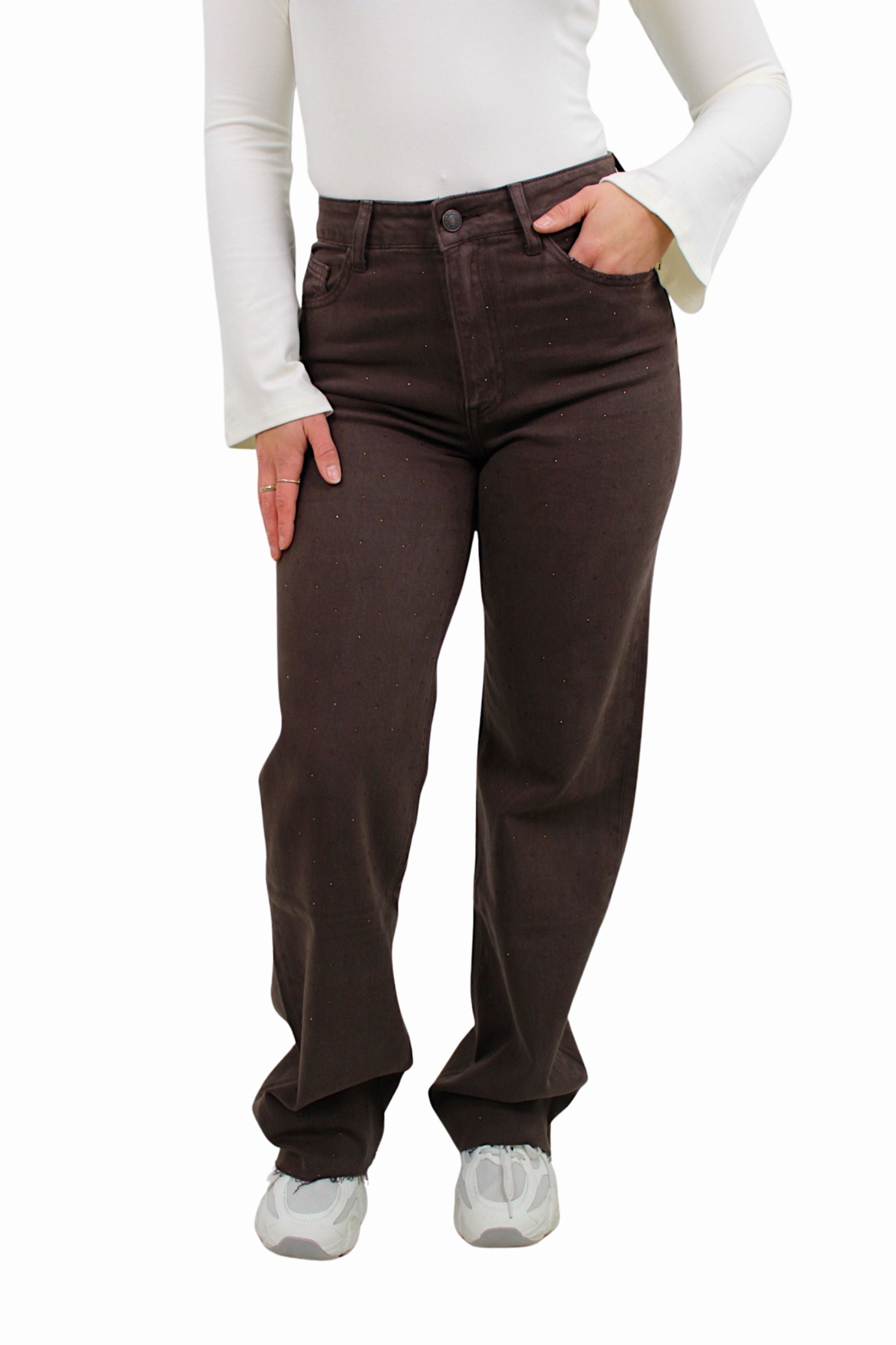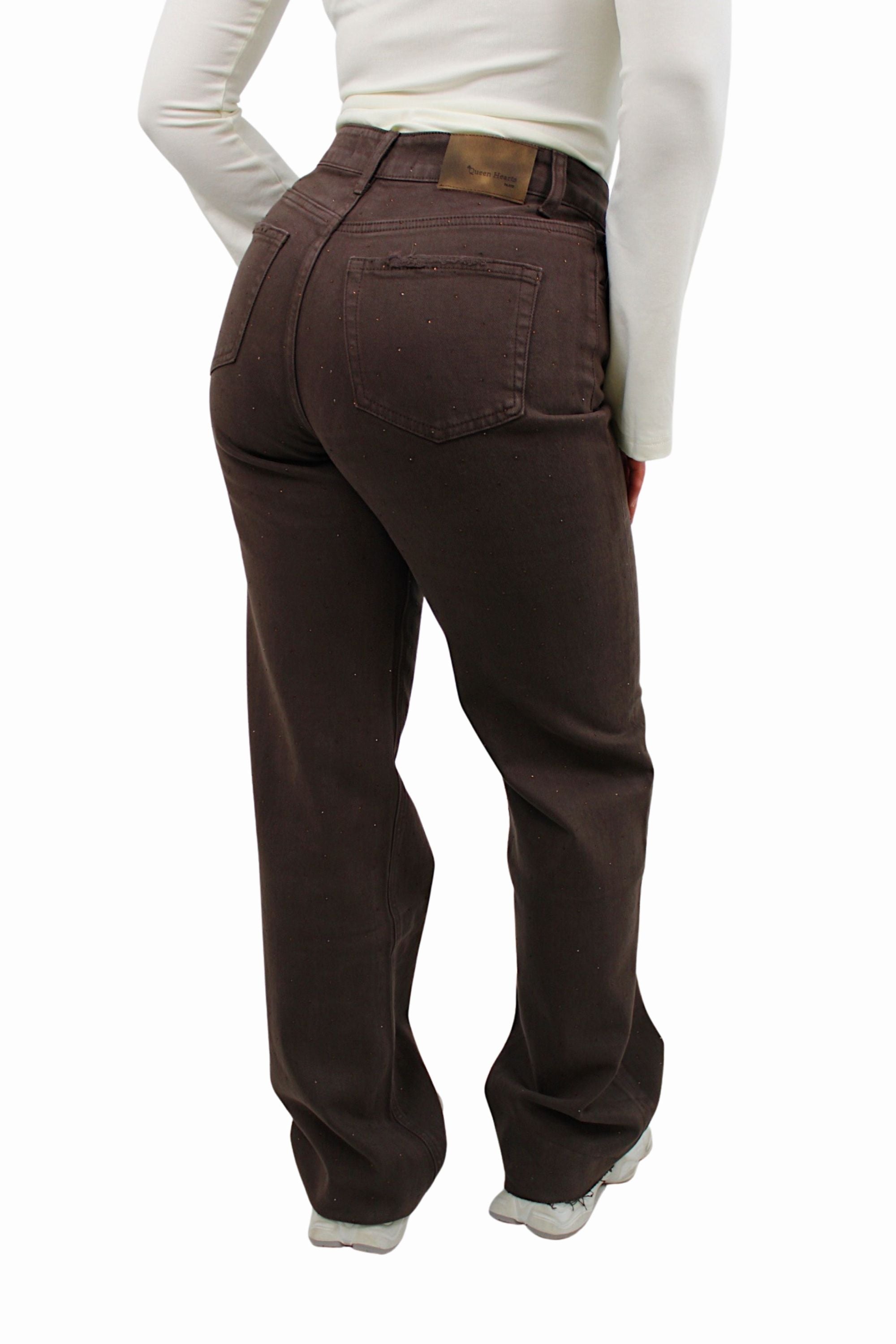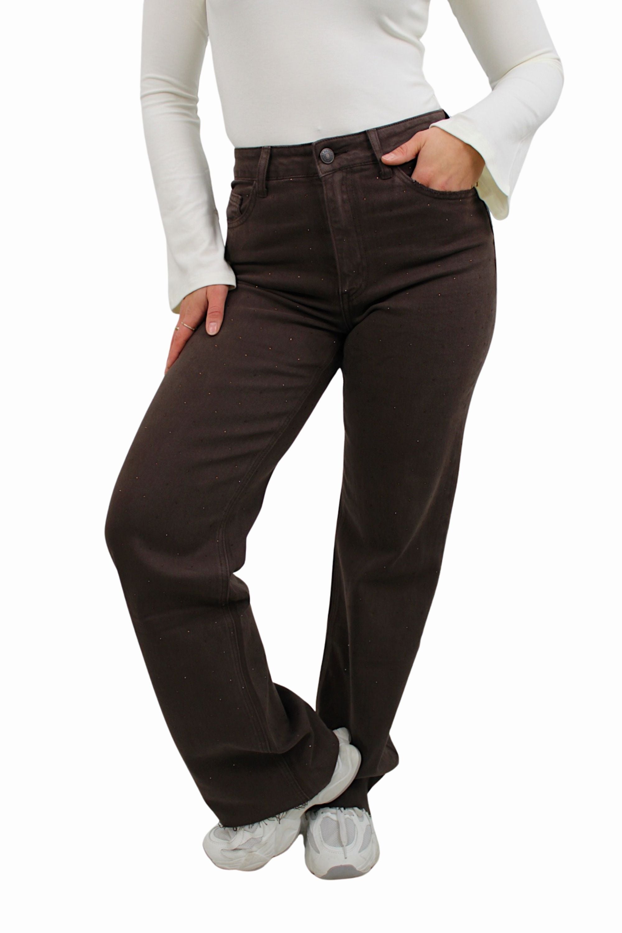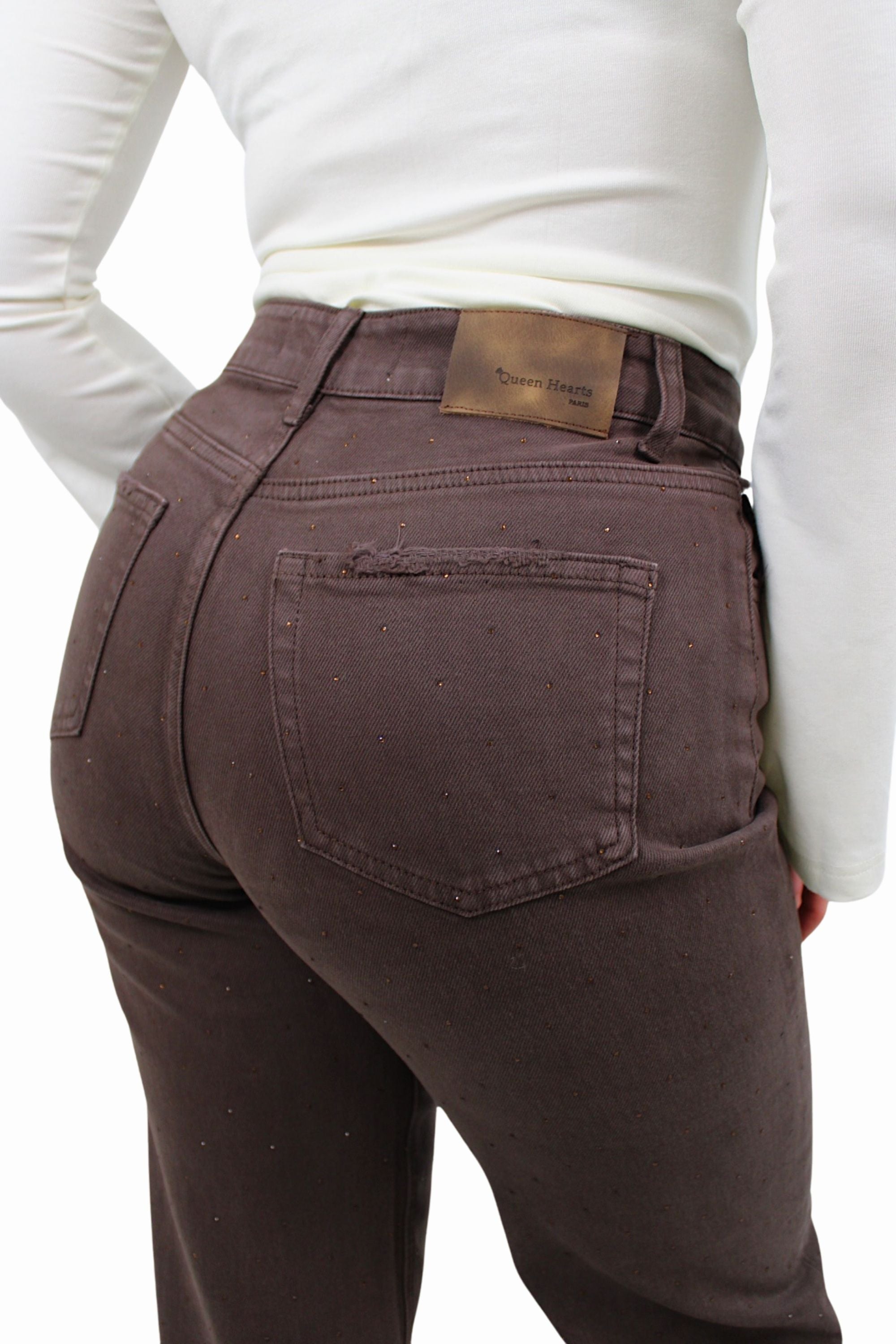 QUEEN HEARTS TALL GLITTER WIDE LEG JEANS W3767 | BROWN - 34/XS