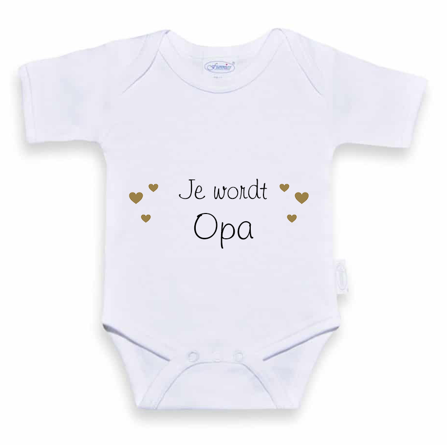 We bedrukken de rompertjes zelf, het is dus ook mogelijk om de tekst aan te laten passen. Laat het ons weten als je een andere tekst wenst. Naast het rompertje met de tekst 'Je wordt opa' hebben we ook rompertjes met de tekst 'Jullie worden opa en oma', 'Je wordt weer opa', 'Je wordt oma', 'Jullie worden oom en tante', etc.