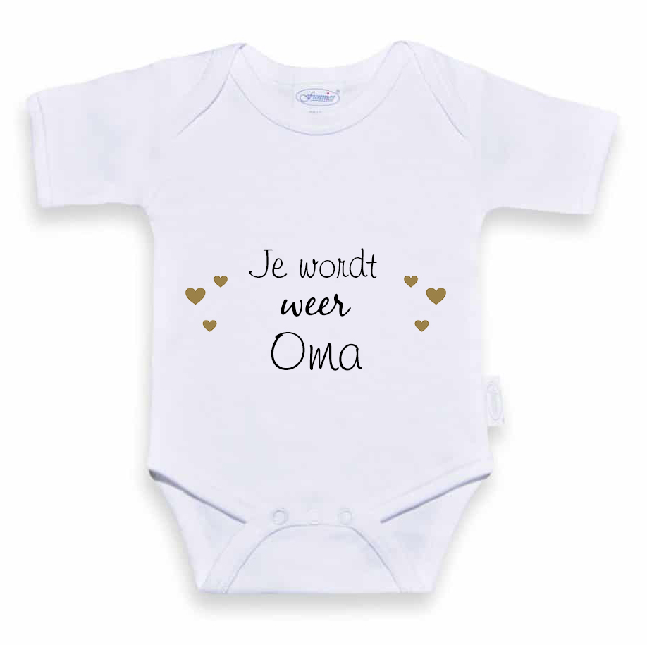 We bedrukken de rompertjes zelf, het is dus ook mogelijk om de tekst aan te laten passen. Laat het ons weten als je een andere tekst wenst. Naast het rompertje met de tekst 'Je wordt weer oma' hebben we ook rompertjes met de tekst 'Jullie worden opa en oma', 'Je wordt oma', 'Je wordt opa', 'Jullie worden oom en tante', etc.