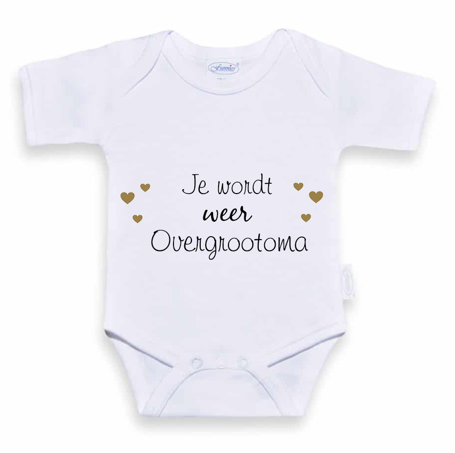 Wil je je oma verrassen om te vertellen dat je zwanger bent, met dit rompertje kondig je op een originele manier je zwangerschap aan. Op het rompertje staat de tekst ‘Je wordt weer overgrootoma’.