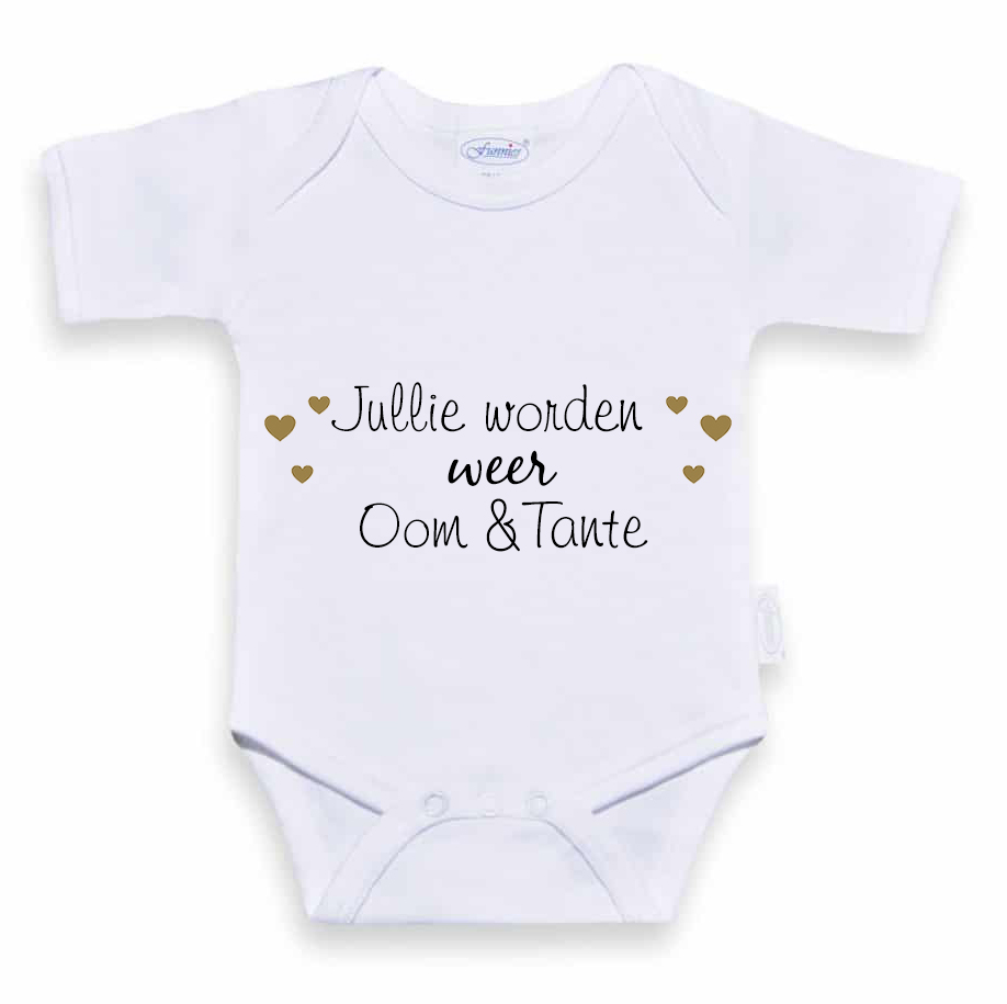 We bedrukken de rompertjes zelf, het is dus ook mogelijk om de tekst aan te laten passen. Laat het ons weten als je een andere tekst wenst. Naast het rompertje met de tekst 'Jullie worden weer oom en tante' hebben we ook rompertjes met de tekst 'Jullie worden oom en tante', 'Je wordt oom', 'Je wordt tante', 'Je wordt oma', 'Jullie worden weer opa en oma', etc.