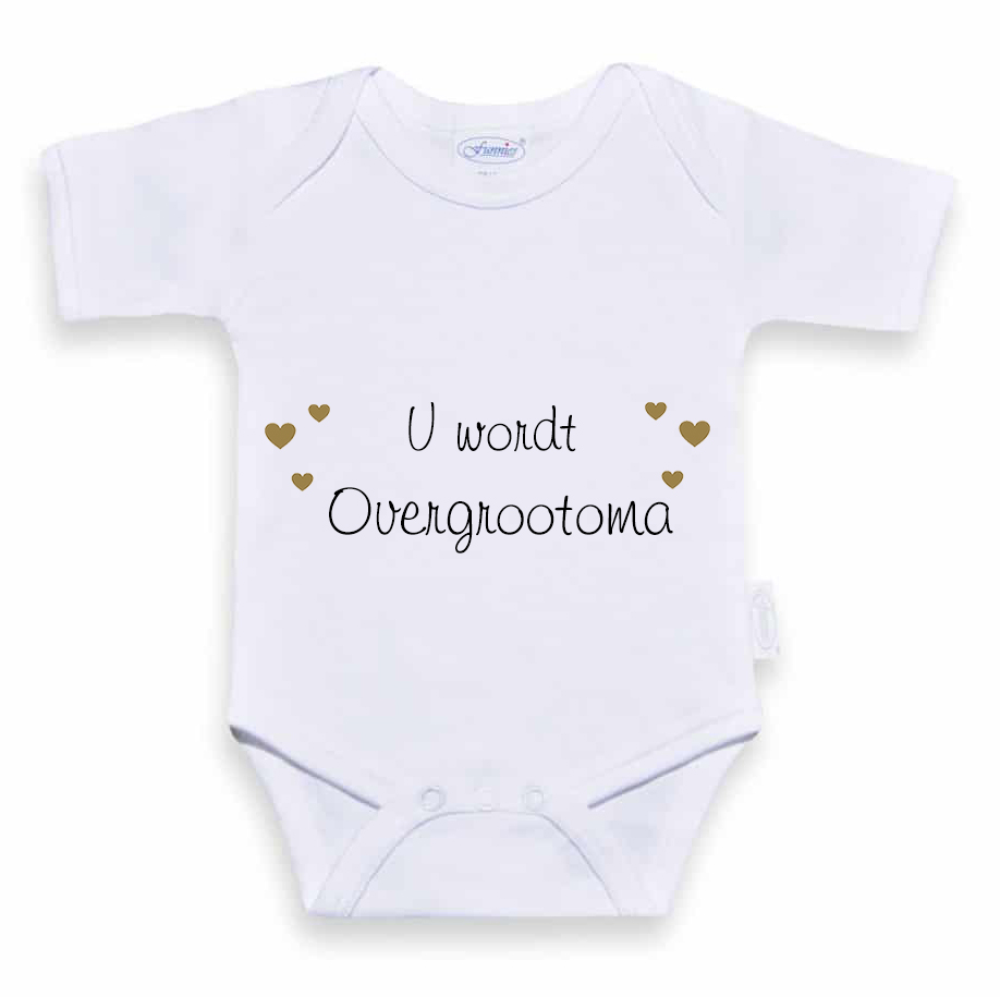Wil je je oma verrassen om te vertellen dat je zwanger bent, met dit rompertje kondig je op een originele manier je zwangerschap aan. Op het rompertje staat de tekst ‘U wordt overgrootoma’.